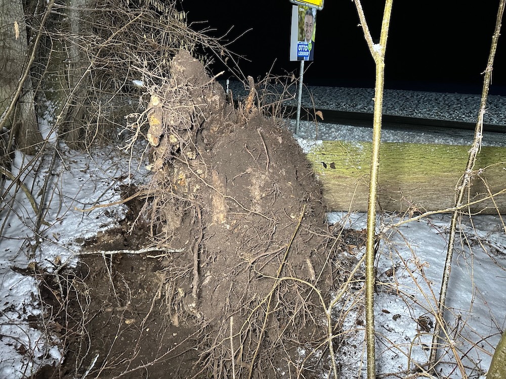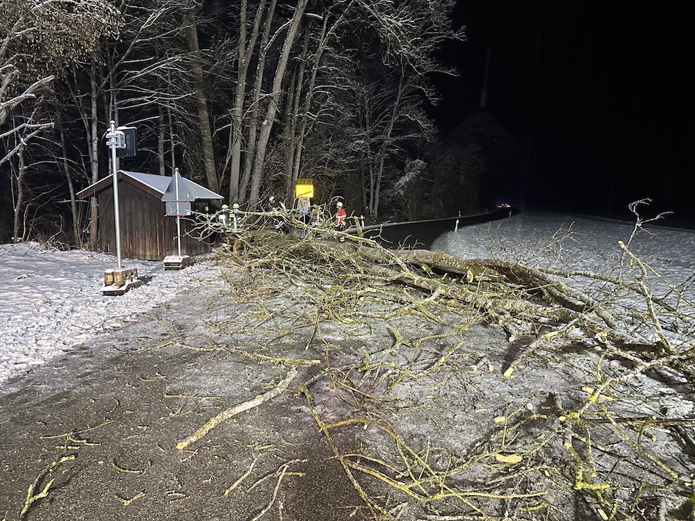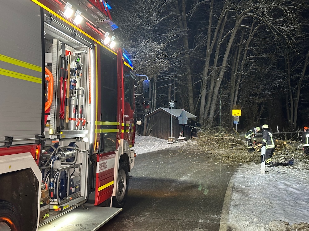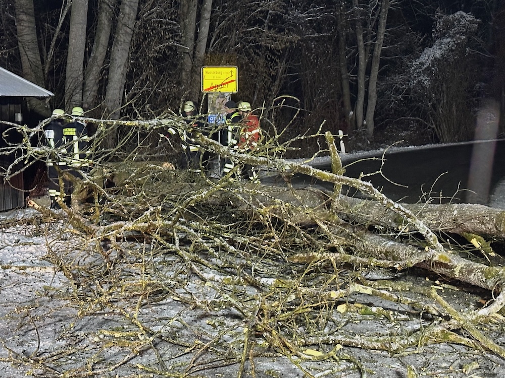 Heute Morgen: Lkw kommen von der Straße ab - Umgestürzter Baum bei Ramerberg