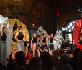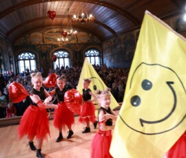 Im bis auf den letzten Platz besetzten Saal starteten die Tanzstrolche und Teenies mit ihrem Programm „Glücksrad der Gefühle“ und zeigten den Zuschauern eine breite Palette an Gefühlen – Traurigkeit, Freude, Wut und Liebe.