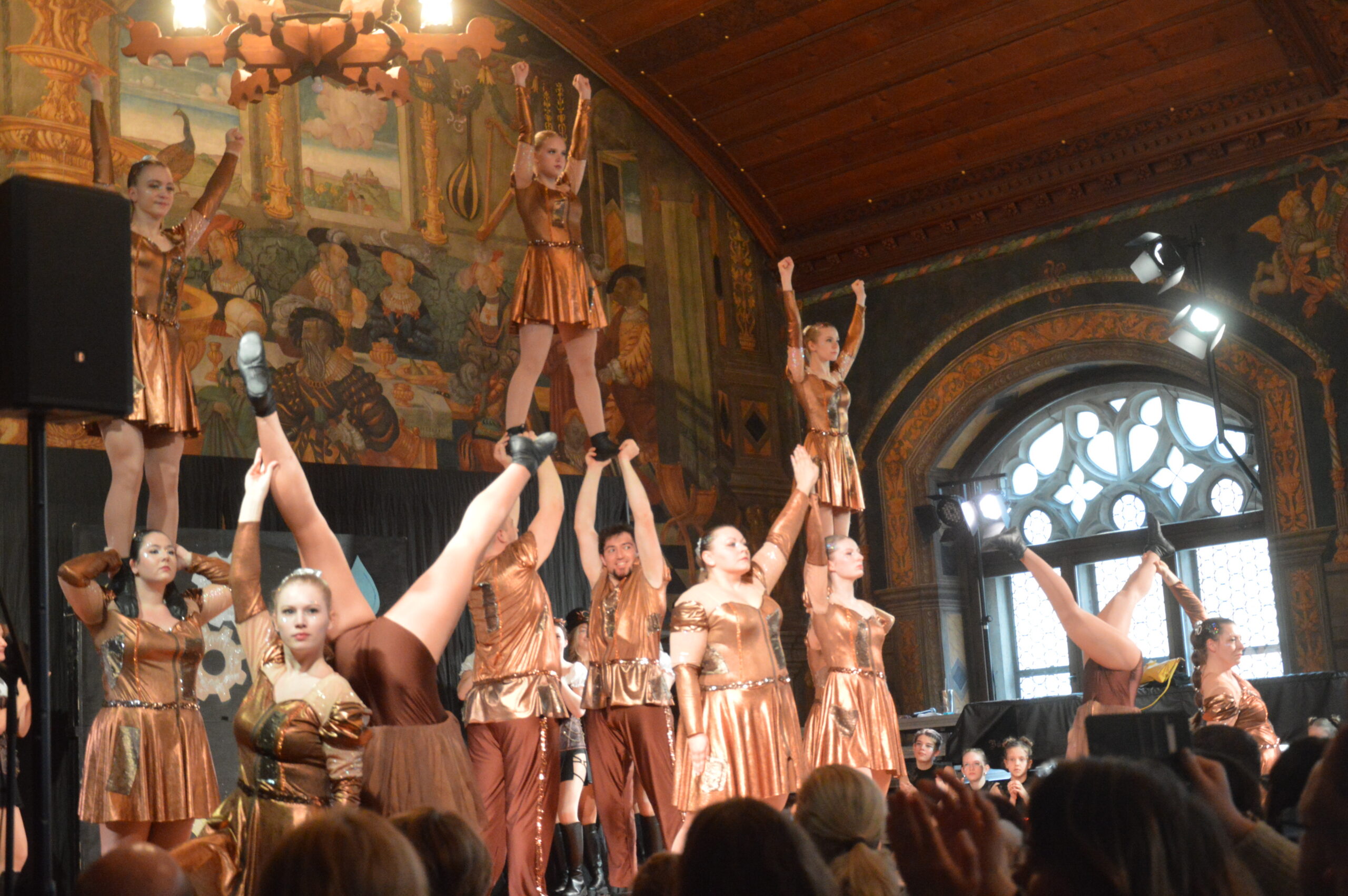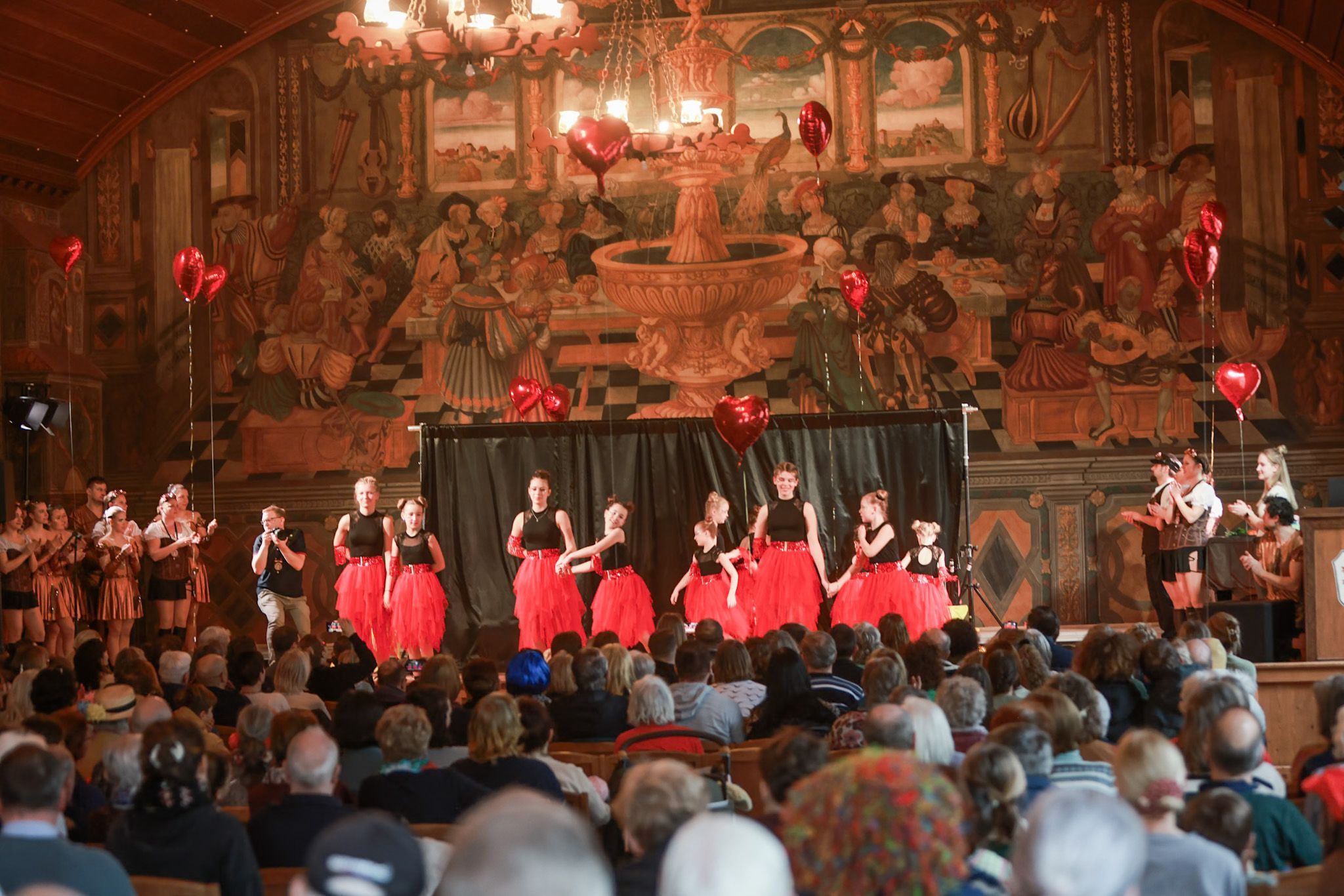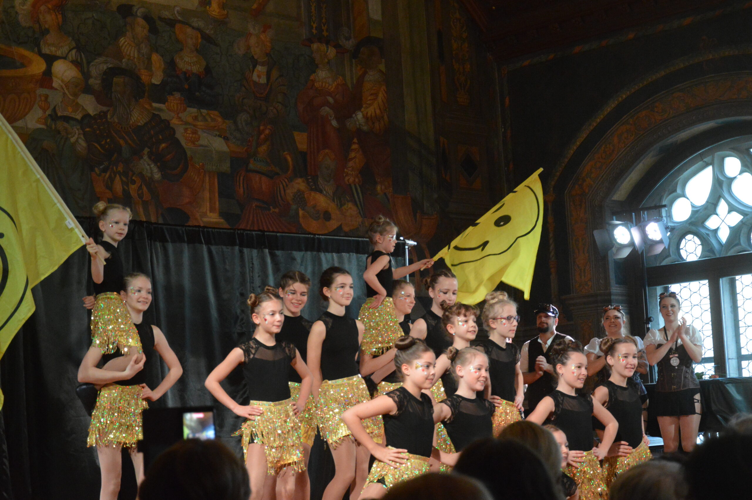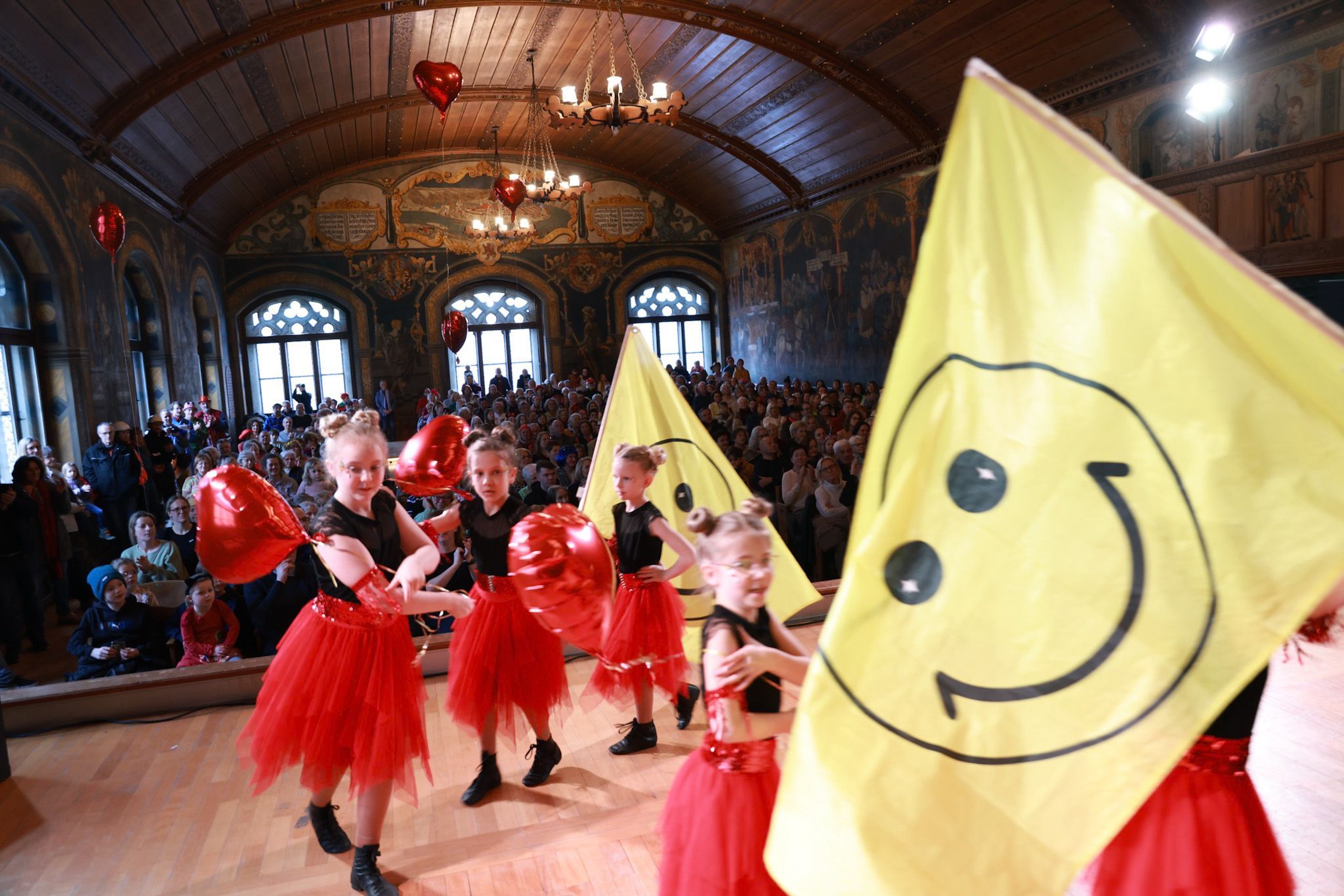 Im bis auf den letzten Platz besetzten Saal starteten die Tanzstrolche und Teenies mit ihrem Programm „Glücksrad der Gefühle“ und zeigten den Zuschauern eine breite Palette an Gefühlen – Traurigkeit, Freude, Wut und Liebe.