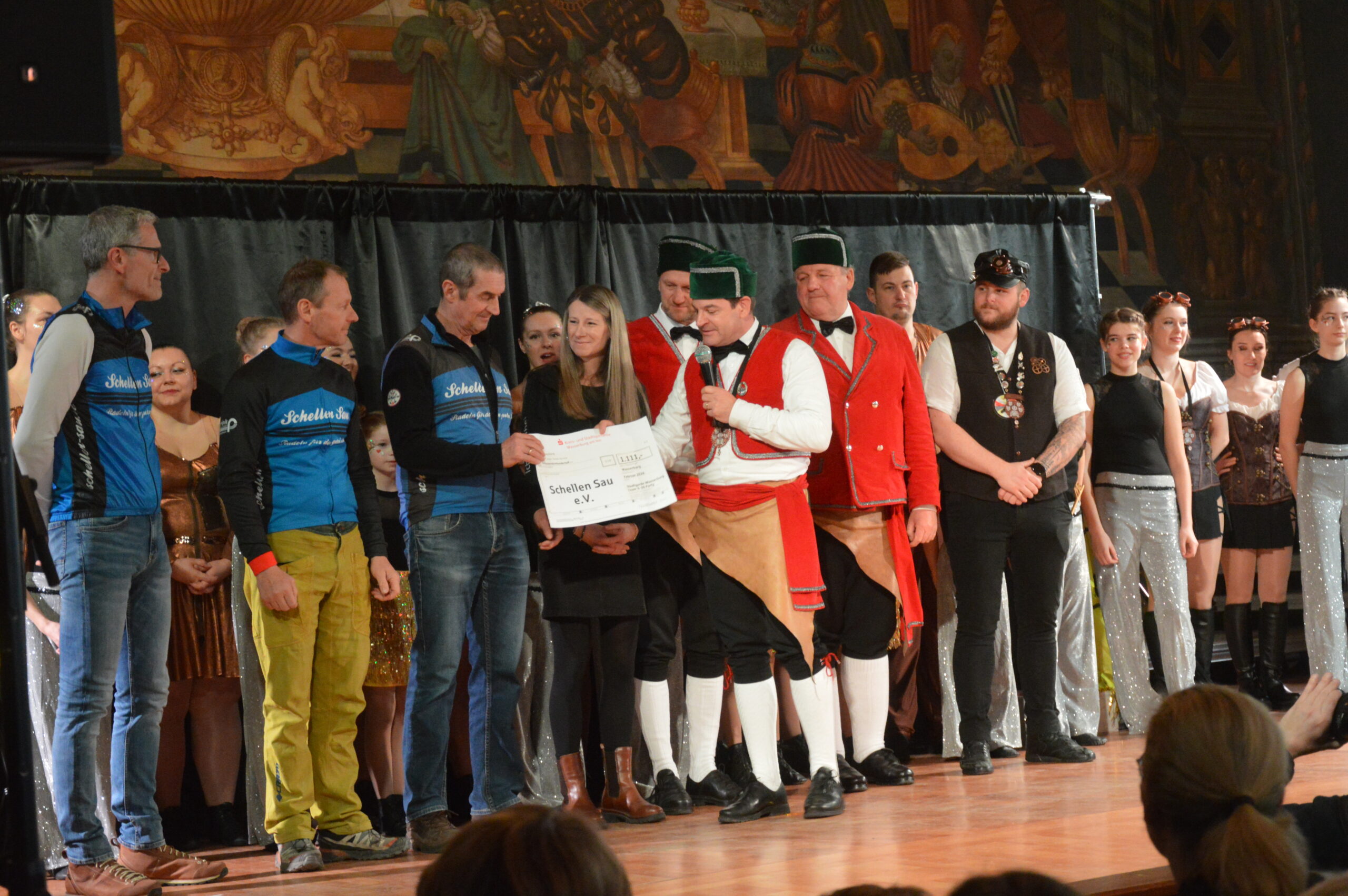Und noch eine Tradition wurde fortgeführt, der Erlös der Ü-30-Party geht auch heuer wieder an einen gemeinnützigen Verein. Mit 1.111 Euro wird die „Schellen Sau“ unterstützt. Übergeben wurde der Scheck heuer neben der Garde auch von Wasserburger Schäfflern.