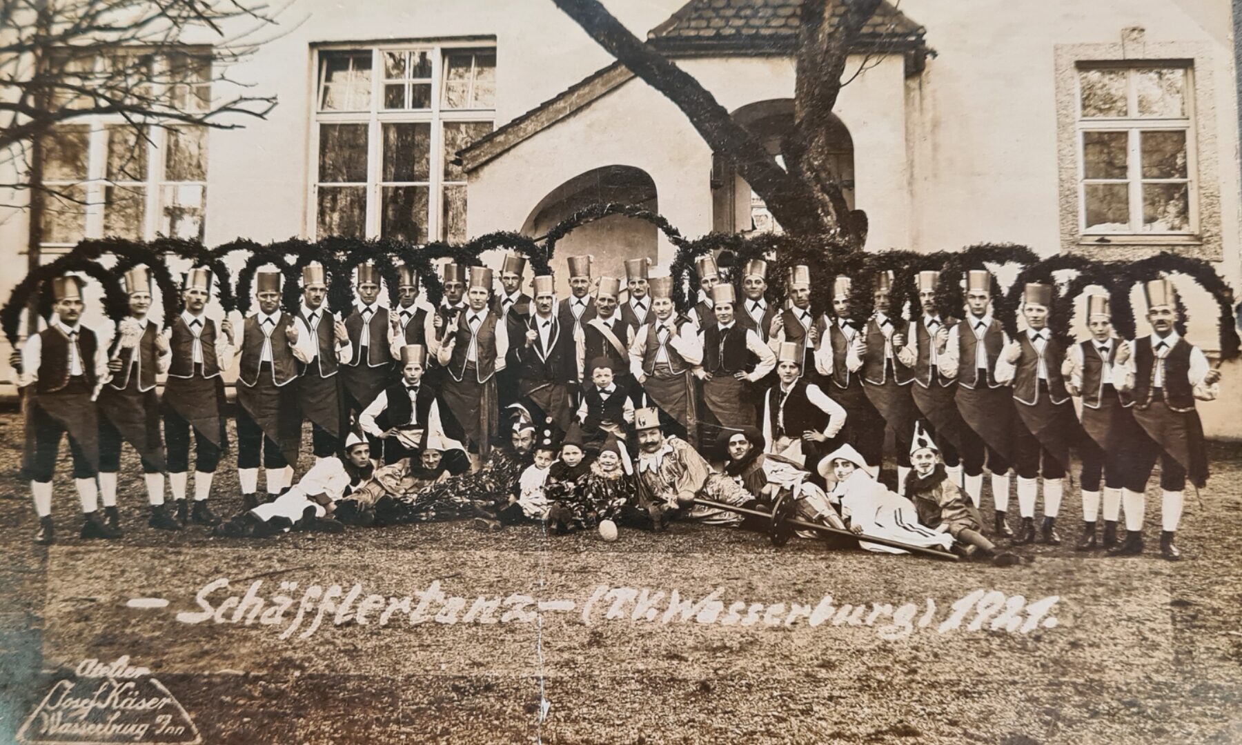 In München und schon anderen bayrischen Städten hatte man sich auf einen Sieben-Jahres-Rhythmus geeinigt und so sollte es auch in Wasserburg sein. 1843 wurde der Tanz das erste Mal in Wasserburg aufgeführt. Erst 1921 war es wieder soweit. Die junge Magda konnte etwas Frohsinn und Abwechslung gut gebrauchen. Sie war noch nicht lange in Wasserburg und kannte noch nicht so viele Leute hier. Da sie aber sehr sportlich war, hatte sie sich gleich bei ihrer Ankunft im TSV 1880 eingeschrieben. Es machte ihr viel Spaß und das Jahr darauf meldete sie sich bei den Schäfflern an. Davon hatte sie schon länger geträumt und nun war sie dabei.
