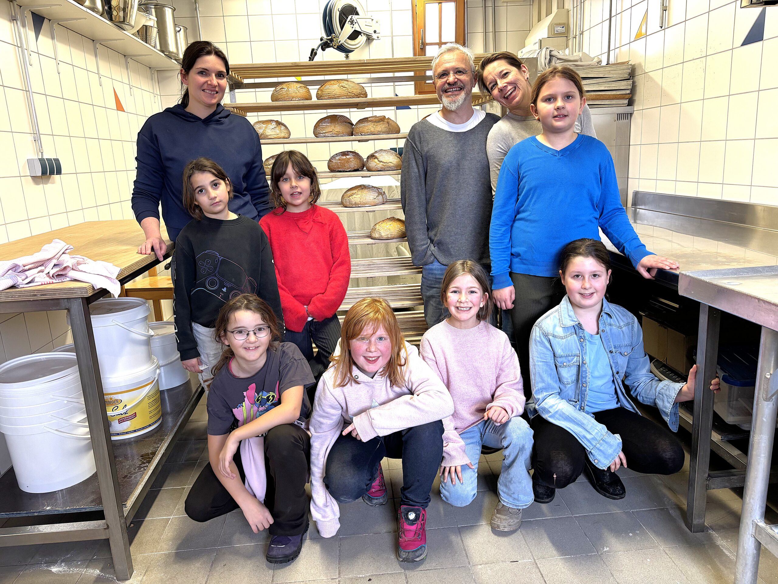 Kommunionskinder aus Pfaffing backen Brot in Attel
