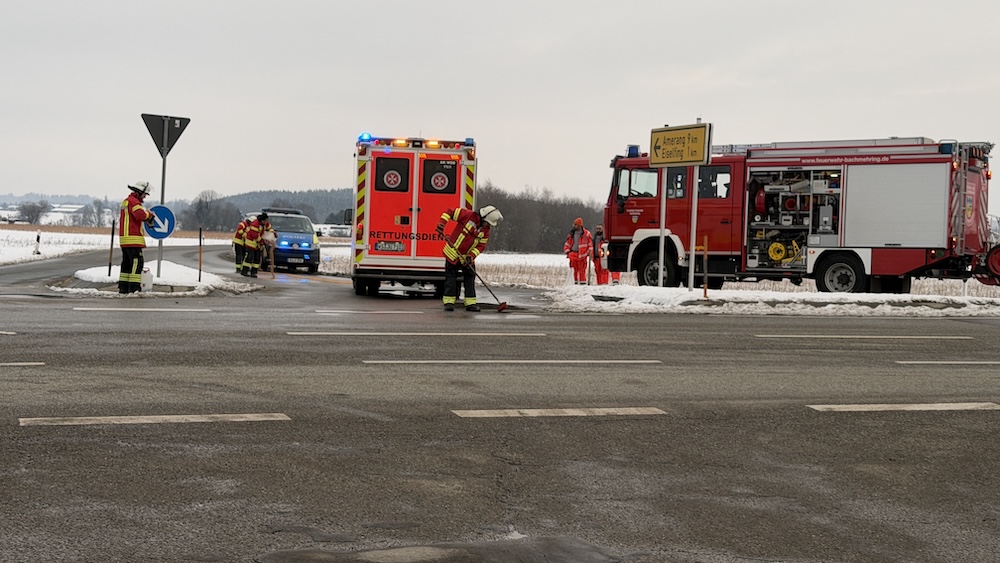 Feuerwehr Bachmehring rückt am Freitagnachmittag auf Staatsstraße 2092 aus