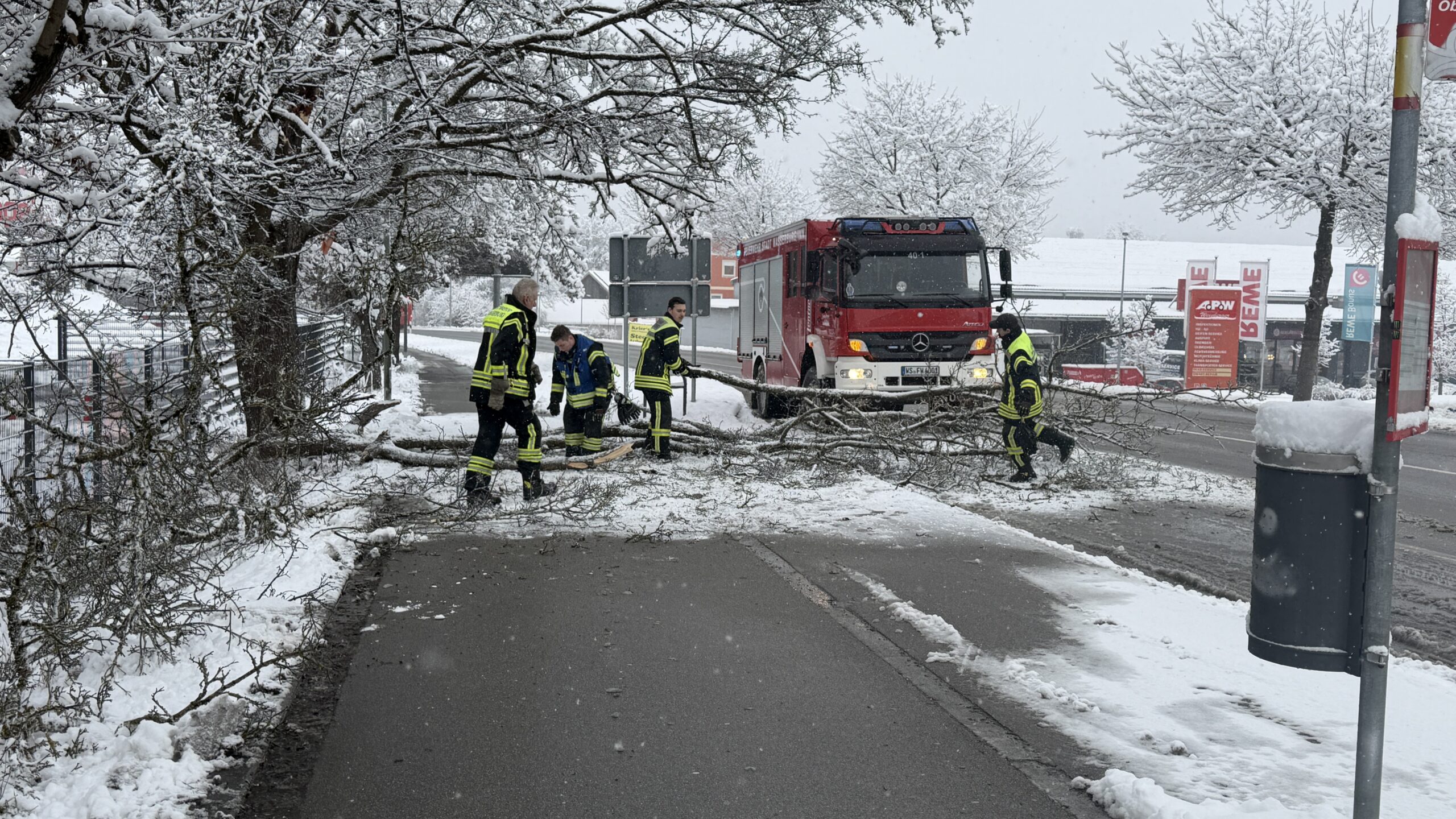 Seit Stunden fällt über Stadt und Altlandkreis schwerer, nasser Schnee vom Himmel. Das macht nicht nur das Fortbewegen auf den Straßen und Gehwegen schwierig, irgendwann geben auch die Äste der Bäume unter der weißen Last nach. Einen ersten Schnee-Einsatz absolvierte die Wasserburger Feuerwehr gegen 8.15 Uhr in der Priener Straße. Dort war ein Baum auf eine Bushaltestelle gefallen. Zum Glück wurde niemand verletzt. Die Haltestelle war rasch geräumt.