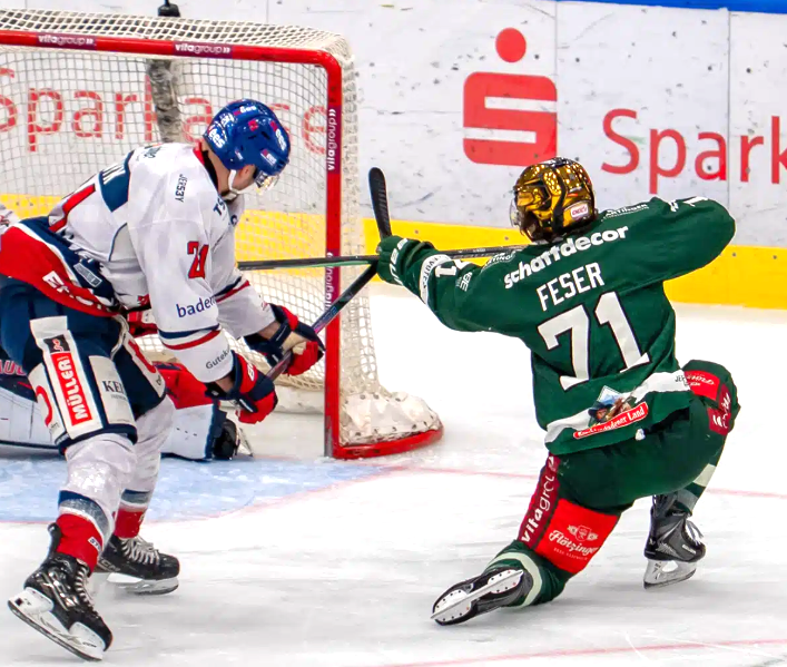 Die ersten Spielsequenzen nach Wiederbeginn zeigten sich allerdings noch sehr zerfahren. Und den zuletzt stabil punktenden und daher berechtigt auf Tabellenrang zehn und die Pre-Playoff-Qualifikation spekulierenden Gästen gelang der Ausgleichstreffer. Nikolas Linsenmaier mogelte einen von der Bande zurückprallenden Puck in das von Kolarz theoretisch zu-, aber praktisch nicht wirklich dichtgemachte kurze Eck – 1:1 (25.).