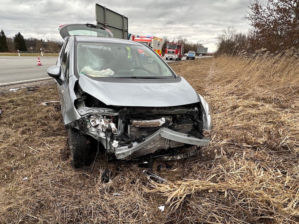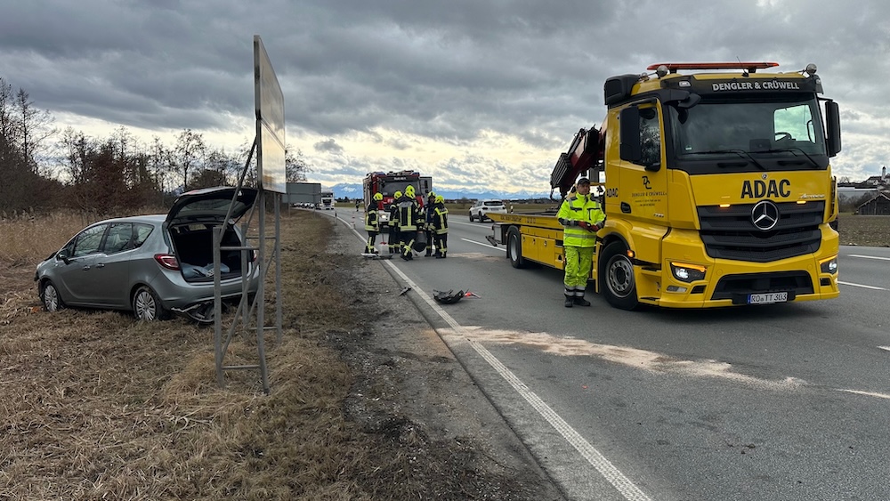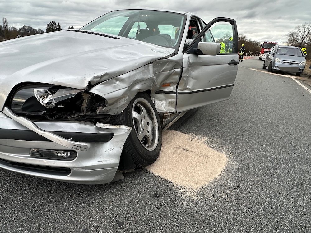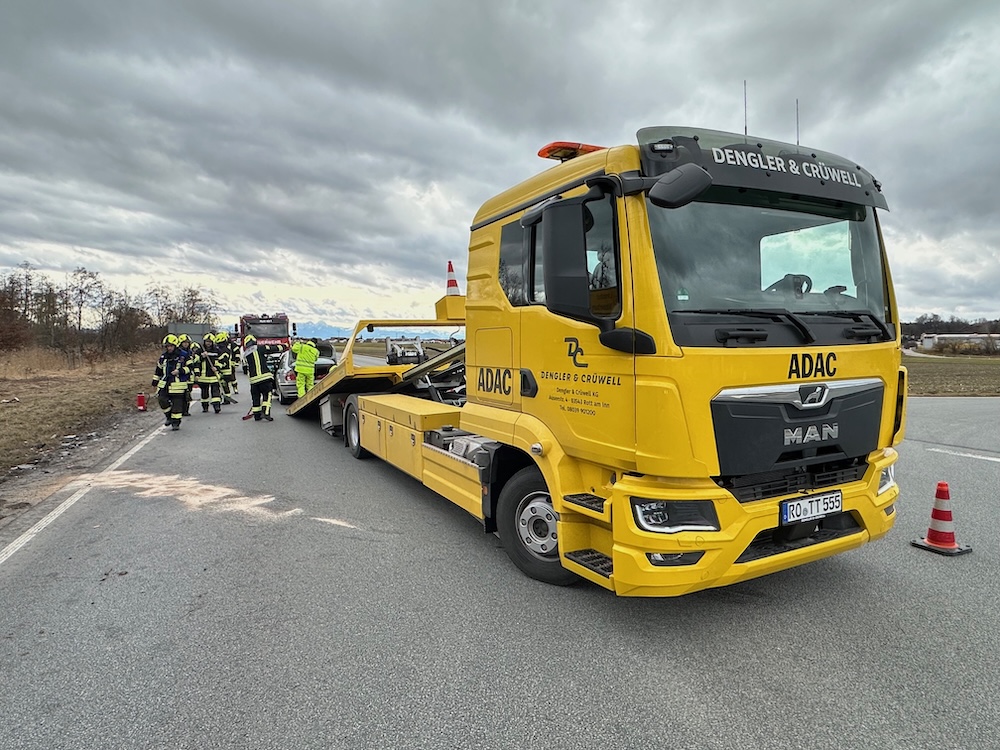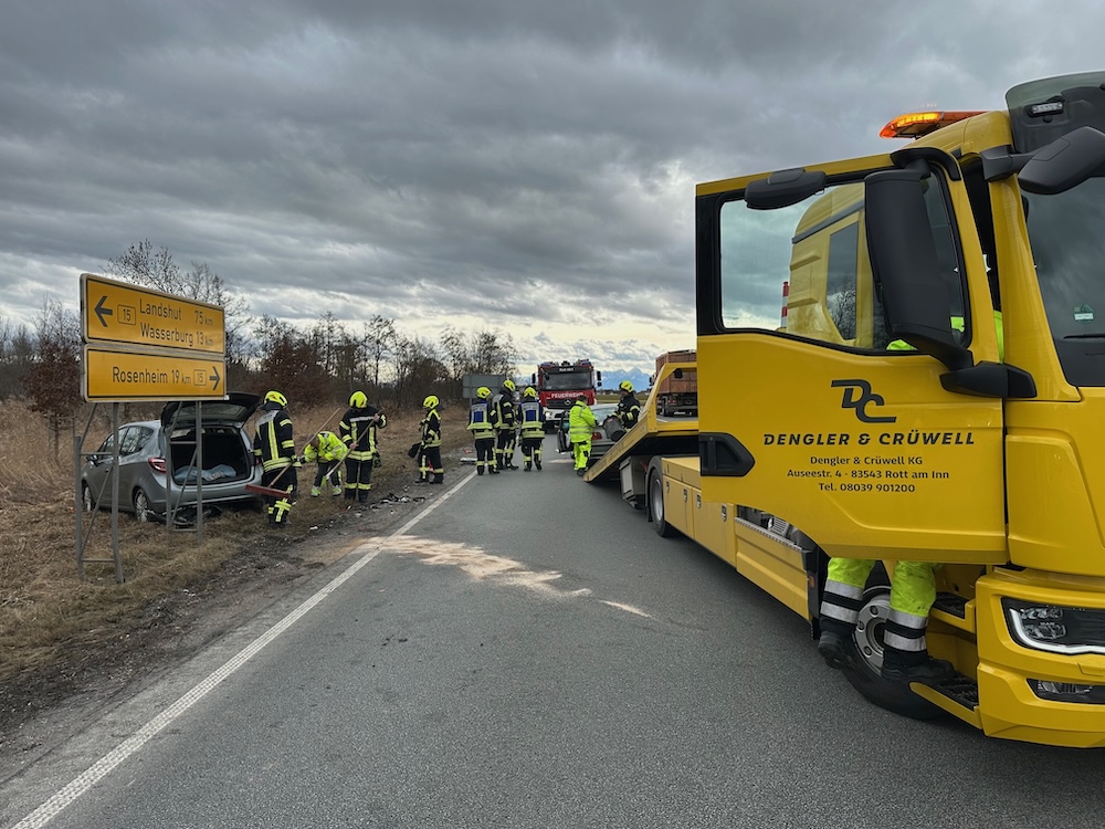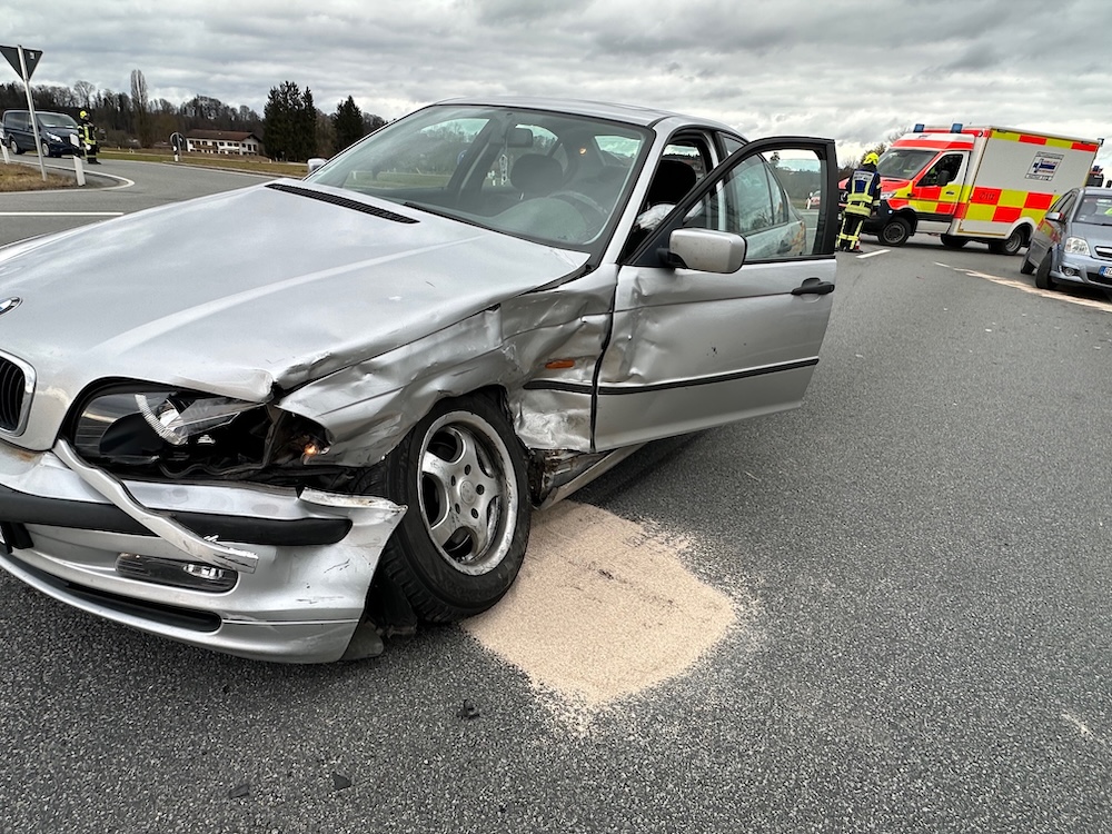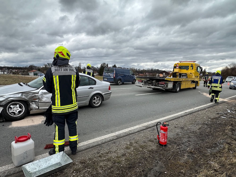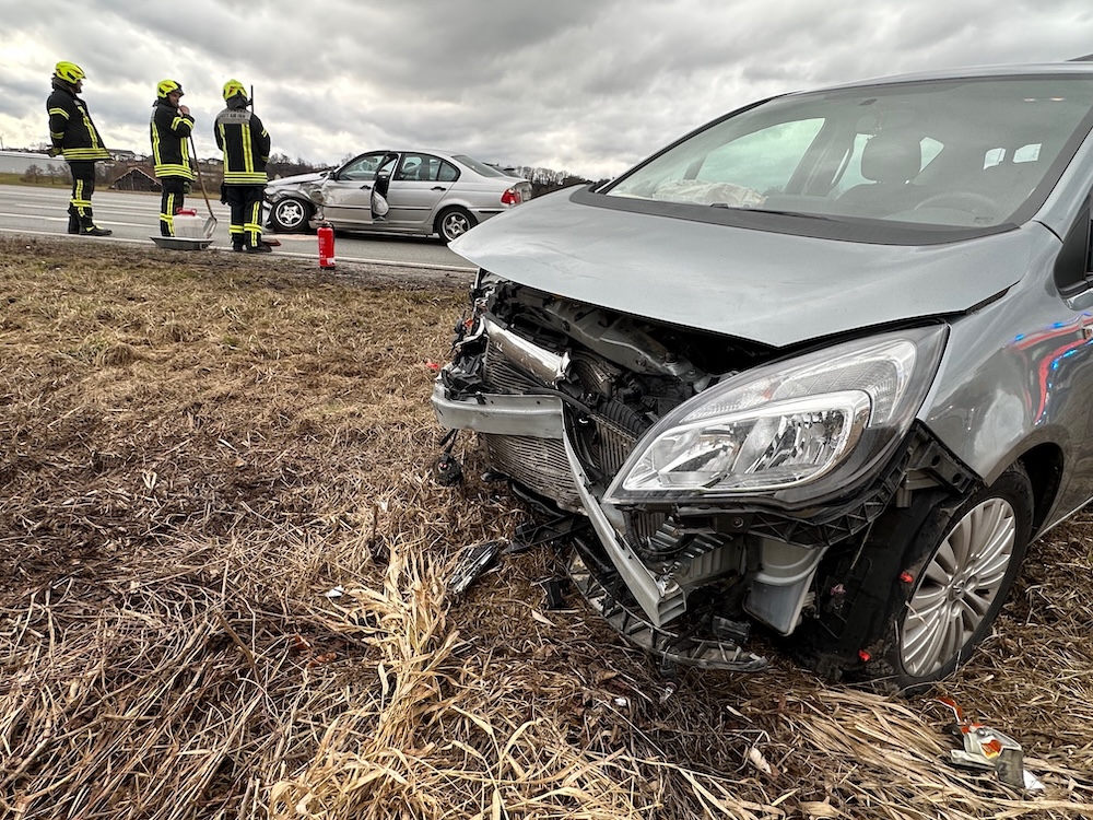 An der Abzweigung Richtung Rott sind zwei Pkw zusammengeprallt - Feuerwehr im Einsatz