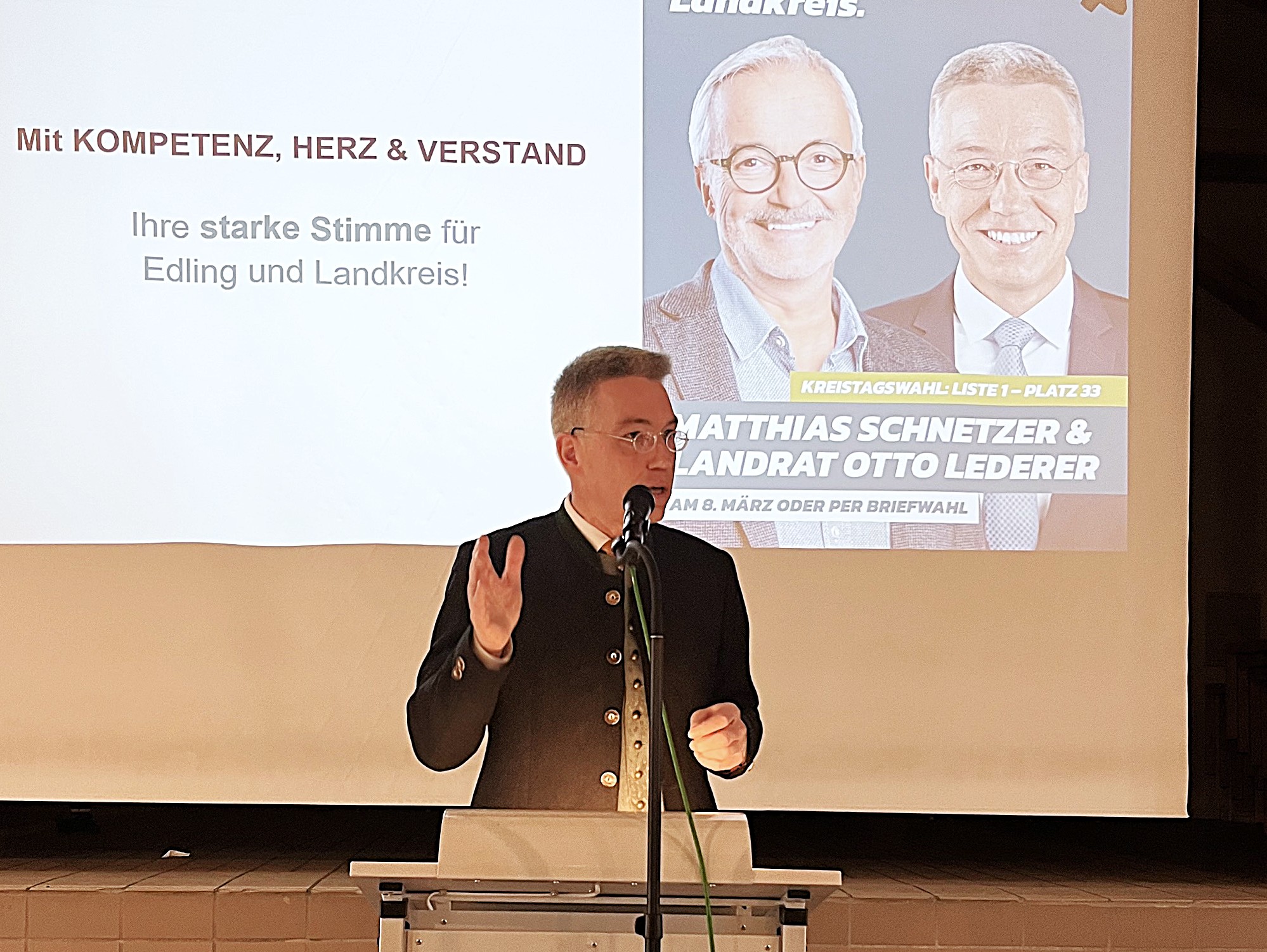 Lederer informierte sachlich über zentrale Zukunftsthemen des Landkreises. Ein besonderer Schwerpunkt lag dabei auf Bildung, Gesundheit und Soziales, der Landwirtschaft sowie der wirtschaftlichen Entwicklung. Er machte deutlich, dass gerade diese Bereiche eng miteinander verknüpft seien und eine verlässliche Grundlage für gleichwertige Lebensverhältnisse in Stadt und Land bilden. Gleichzeitig betonte er die Bedeutung nachhaltiger Entscheidungen, um den Landkreis Rosenheim auch für kommende Generationen gut aufzustellen.