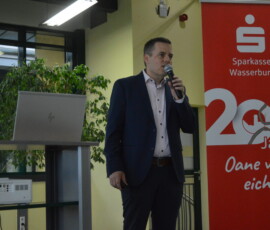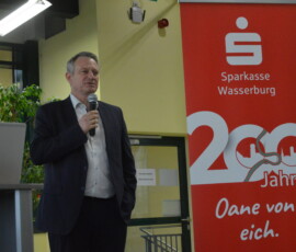 Unter dem Motto „Oane von Eich“ feiert die Sparkasse Wasserburg heuer ihr 200-jähriges Bestehen. Heute gab es für die Kunden eine ganz besondere Veranstaltung: „Landwirtschaft – der Blick nach vorne“ hieß das Thema im Agri-Park in Kirchdorf bei Haag.