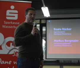 Zum Abschluss der Veranstaltung stellten sich Beate Rücker, Sparkassenfachwirtin und Agrarkundenberaterin, sowie Versicherungsfachmann Markus Bergmaier vor. Bei der Sparkasse gehe es nicht nur um Finanzierungen, sondern auch um viele weitere Gebiete wie Online-Banking, was gilt es zu beachten bei Hofübergaben, Vollmachten oder Abgleiche mit dem Steuerberater. Auch sei es wichtig zu wissen, wie es künftig weitergehe in Fragen der Geldanlage oder Altersvorsorge. Beate Rücker freute sich auf viele interessante Gespräche mit den Anwesenden und Kunden und wünschte viel Glück für Haus, Hof und Stall.