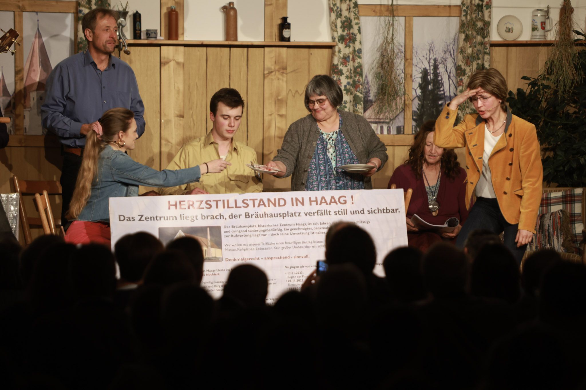 Etwa anderes als in den Vorjahren verlief die heurige Fastenrede, da Dr. Florian Haas als Bürgermeisterkandidat passen musste. Deshalb entschloss man sich, ein Casting zur „Suche nach der Starkbierrede“ durchzuführen. Eva Furch, Manuel Bauer, Alex Schmid, und Fabian Neumann diskutierten, wer es denn sein könnte und luden ihre jeweiligen Favoriten zu einer Festrede ein. Bernd Furch, Florian Furch und Christa Torres sorgten für eine Fastenrede, bei der vor allem der Stilstand im Ortskern, schlechte Straßen sowie die bevorstehende Wahl thematisiert wurden. Von „Gladiatorenkämpfen in Kirchdorf“ und „Felix Haaga“, einem glücklichen Haag mit gleich zwei Bürgermeisterkandidaten sprach Christa Torres alias die ehrwürdige Schwester Christina. Am Ende des Castings wurde zwar kein eindeutiger neuer Fastenprediger auserkoren, man war sich aber einig „Wir lieben unser Haag“.