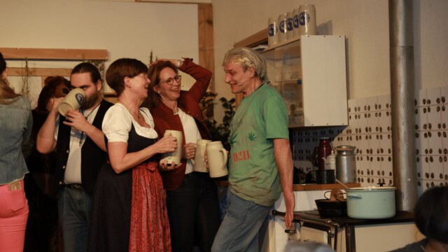Am Ende der Vorstellung gabs von Bürgermeisterin Sissi Schätz und Dr. Florian Haas noch ein Schnapserl für alle Mitwirkenden. „Schee war´s“, so die begeisterte Meinung des Publikums.
