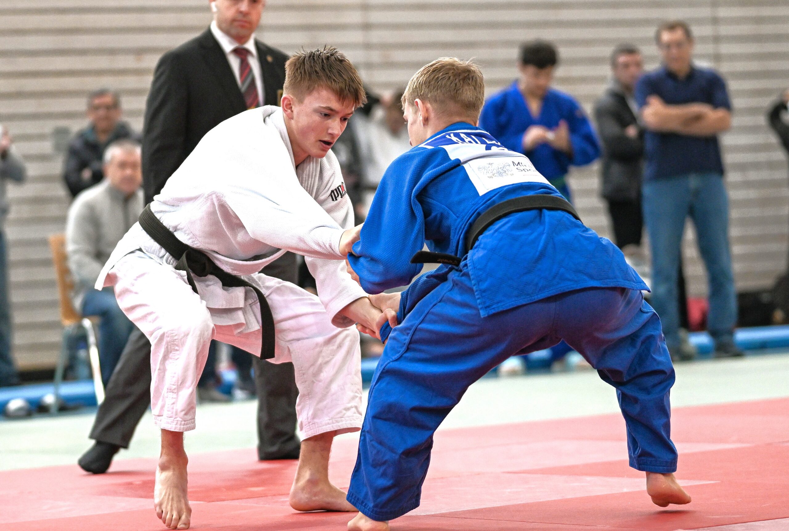 Es war leider ein Hammer-Los bei der Süddeutschen Meisterschaft für ihn: Maxim Weisser (weißer Anzug) vom Kampfsportverein Bad Aibling ging bei der männlichen U21 in Pforzheim in der Gewichtsklasse bis 60 kg an den Start.