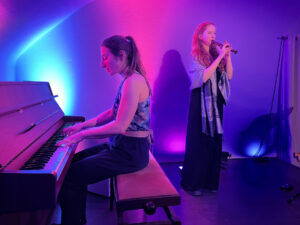 Hinter dem Duo stehen die Musikerinnen Fiona Zimmermann (Blockflöten, Gesang) und Barbara Stumpf (Blockflöten, Klavier). Mit großer Spielfreude und spürbarer künstlerischer Neugier entführten sie ihr Publikum in eine facettenreiche Klangwelt, die Bekanntes neu denken ließ und Grenzen zwischen Epochen und Ausdrucksformen bewusst auflöste.
