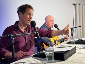 Dabei kamen aber nicht nur Familien und Kinder in den Gimplkeller; auch eine ganze Reihe Erwachsener ließen sich den besonderen Märchennachmittag nicht entgehen. Von Beginn an herrschte im historischen Gewölbekeller eine ausgelassene und fröhliche Atmosphäre. Mit viel Witz, Musik und bayerischem Charme nahmen Braun und Murr das Publikum mit auf ihre ganz eigene Reise durch das Märchenland.
