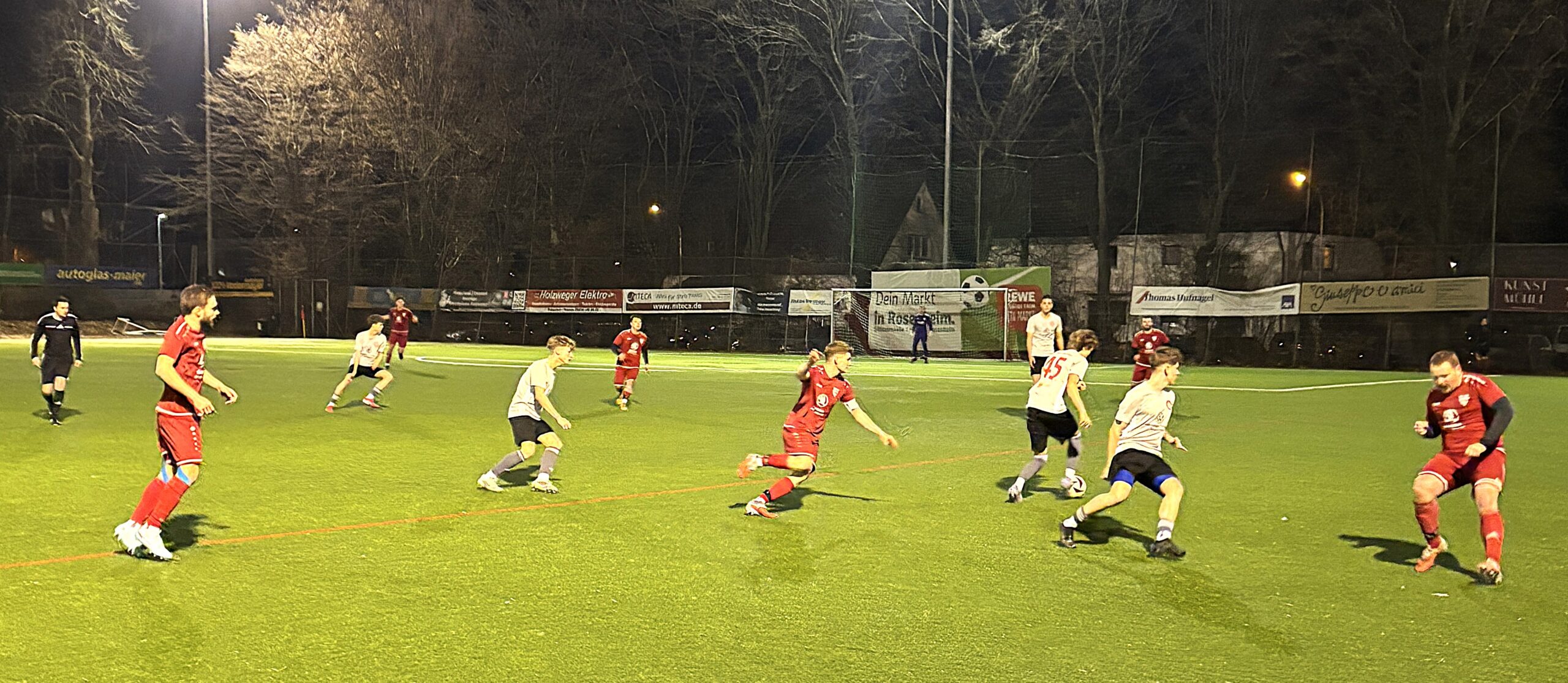 Man stand tief und versuchte auf Konter zu lauern. Rosenheim II hatte aber gleich mit dem ersten ernsthaften Angriff eine Großchance zu verzeichnen. Eine Flanke fand Sturmtank Riccardo Merati, dessen Kopfball kratzte Torwart Herbst aus dem bedrohten Eck und der Schlussmann war dann auch beim Nachschuss zur Stelle.