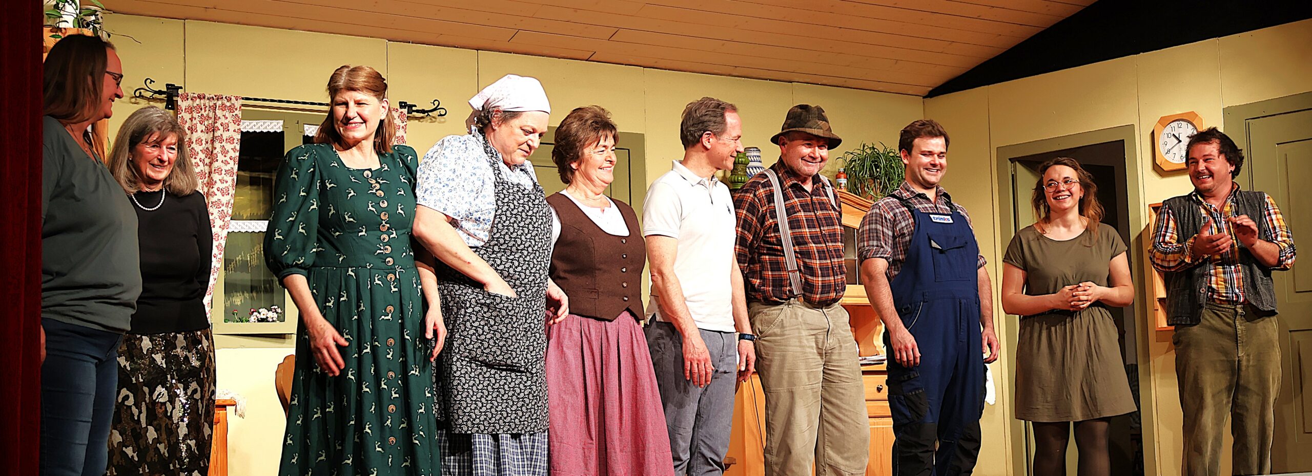 Hinter den Kulissen ist Rosa Altenburger (im Gruppenbild unten 2. von links) die bewährte Souffleuse – Alexandra Sewald-Heiß (ganz links) sorgt mit Madelaine Gröbner für die richtige Maske des Ensembles und Richard sowie Robert Krogler setzen alle ins beste Licht.