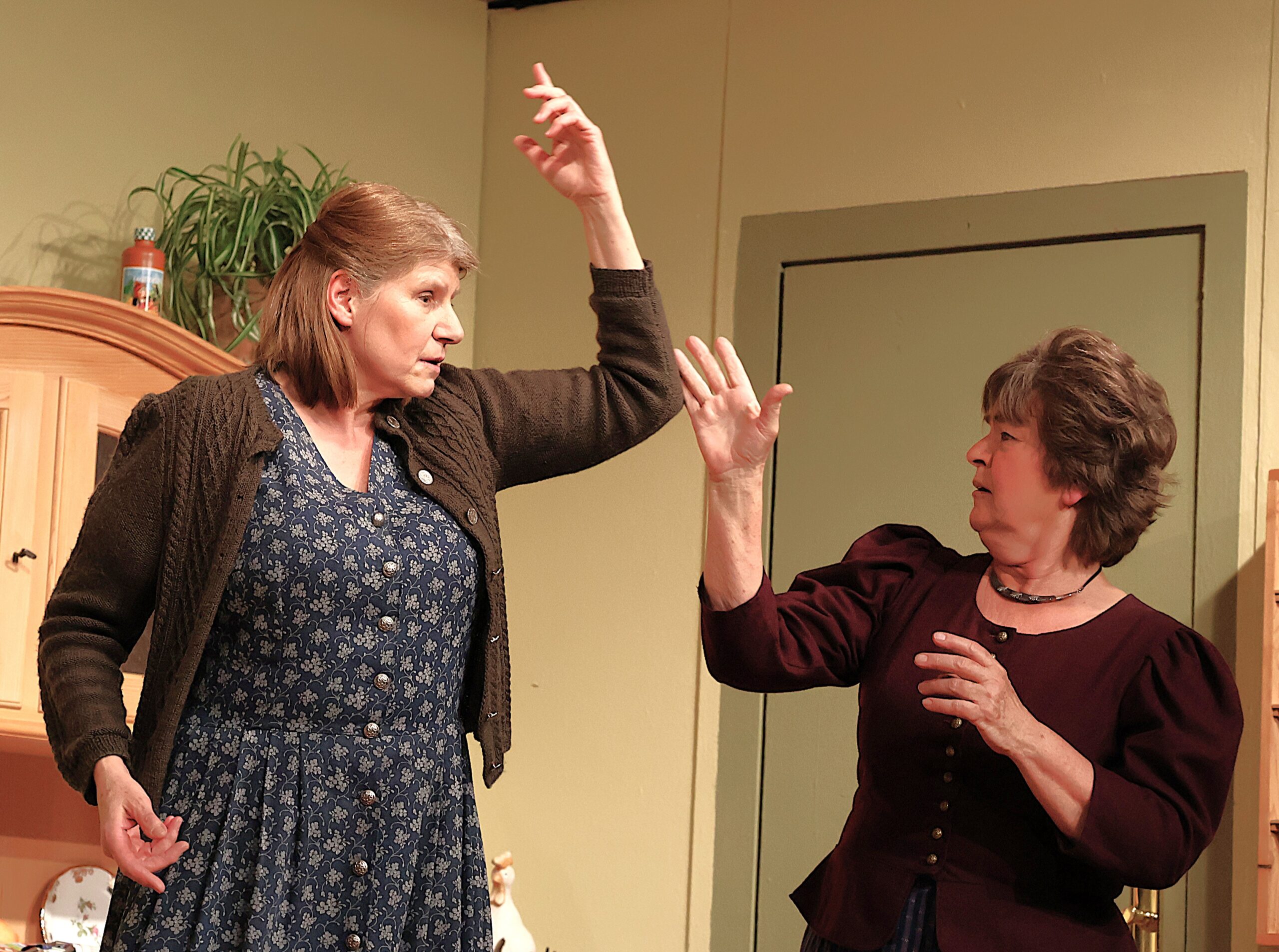 Nicht einfach war die Rolle, die Marianne Eisgruber (links) als Amalie Ameismeier, eine Freundin von Leni, innehat: Ihr linker Arm macht quasi, wos a wui.