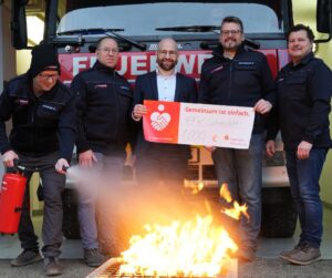 Ganz im Sinne ihres Jubiläumsmottos „Oane von eich“ engagiert sich die Sparkasse Wasserburg seit jeher für die Menschen und Vereine in der Region. So hat das regionale Kreditinstitut die Feuerwehr Schonstett gerne mit einer Spende in Höhe von 1.000 Euro unterstützt. Mit dem Betrag wurde ein Feuerlöschübungsgerät angeschafft, das künftig für realitätsnahe Schulungen und Übungen der Feuerwehrdienstleistenden eingesetzt wird.