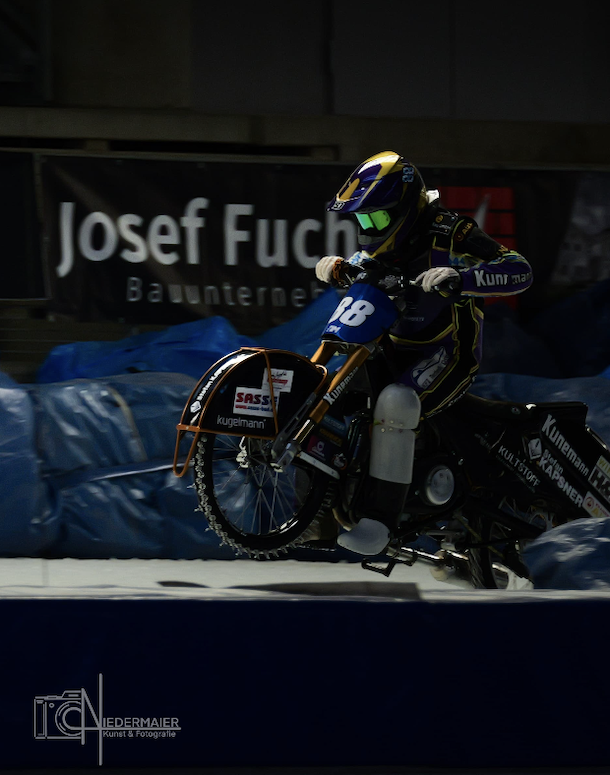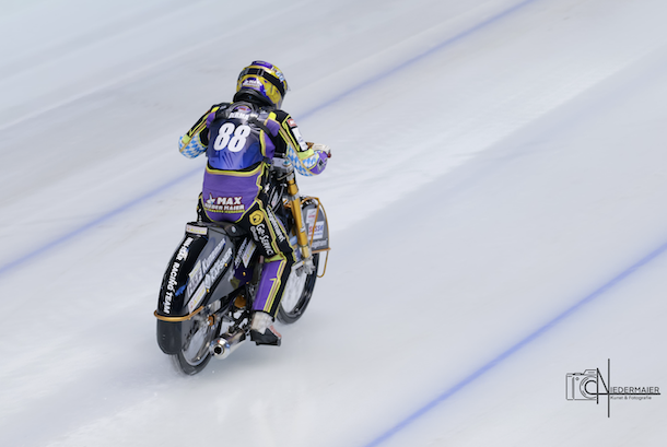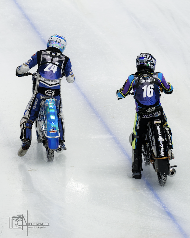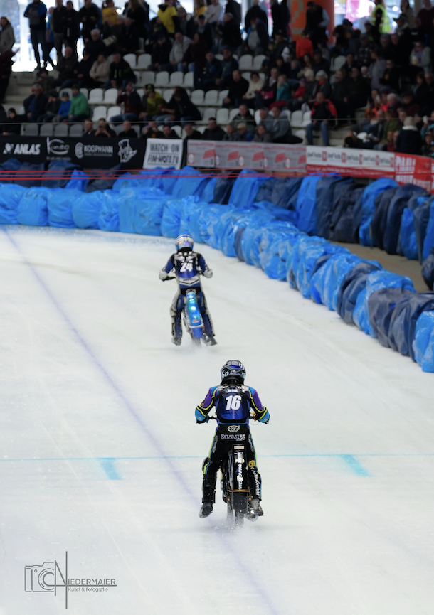 In der Inzeller Max Aicher-Arena fehlte es am Wochenende bei der Eisspeedway-WM nicht an Action und Spannung. An Gemütlichkeit war auch gestern am zweiten Renntag nicht zu denken. So ging es auch von Beginn schon gleich heiß her, genauer gesagt mit gleich zwei Rennabbrüchen nach Stürzen, zuerst von Max Koivula und Heikki Huusko und danach vom Eishans. Während in Heat 4 Luca Bauer megastark ins Renngeschehen startete. Auch Max Niedermaier vom. Wasserburger inn-Isar-Racing-Team zeigte starke Fights, unter anderem mit Niclas Svensson in Lauf 5.
