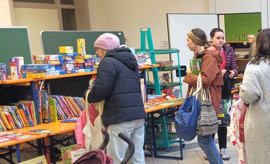 Ein großes Spielzeug-, Bücher- und Schuhsortiment, Umstandsmode und Frühjahrs- und Sommerkleidung vom Baby bis zum Jugendlichen-Alter, Babyartikel und Kinderwägen, Autositze und Rucksäcke, da blieben kaum Wünsche offen. Das tolle Kuchen- und Kaffeeangebot des Elternbeirats des Kindergartens ergänzte noch kulinarische Bedürfnisse.