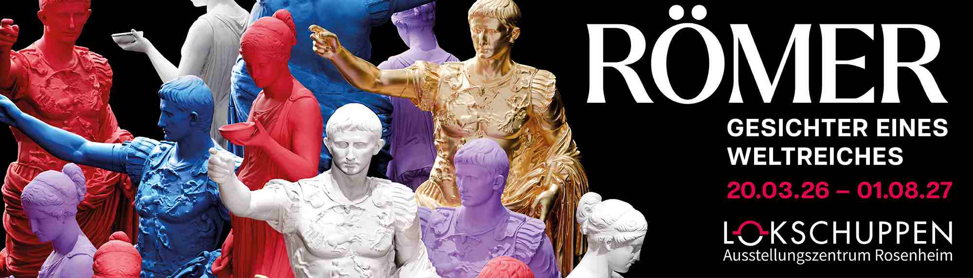 Für die nächsten eineinhalb Jahre: Im Lokschuppen Rosenheim eröffnet am kommenden Freitag, 20. März, die Ausstellung „Römer – Gesichter eines Weltreiches“. Am heutigen Abend findet bereits die feierliche Eröffnung für geladene Gäste statt.