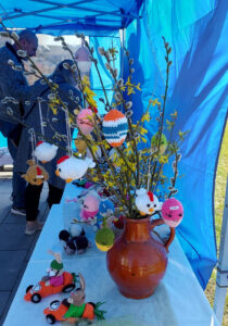 Bereits am Vortag beginnt die Hauptarbeit mit gut durchdachtem Aufbau im Cafe „Brotliebe“. Die Beschaulichkeit des Cafes wird schnell ausgetauscht durch hektisches, dennoch strukturiertes Treiben, um den angebotenen Handarbeiten den verdienten Rahmen zu bieten. Gestricktes, genähtes und süße Osterdeko fanden ihren passenden Platz auf Ständern und an Tischen. Auch im Außenbereich gab es jede Menge zu entdecken.