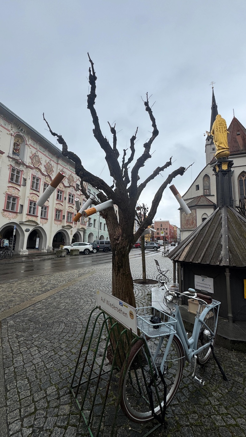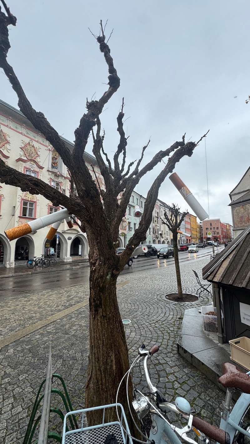 Zigarettenkippen wachsen zum Glück nicht auf Bäumen. Aber leider liegen sie zuhauf auf dem Pflaster in den Gassen der Altstadt herum. Achtlos weggeworfen sind sie eine echte Gefahr für die Umwelt (zum Beispiel: Eine Kippe kann bis zu 1.000 Liter Grundwasser verunreinigen). Darauf macht die Wasserburger Realschule seit gestern wieder auf dem Marienplatz mit ihrem bemerkenswerten Umweltprojekt aufmerksam. Fotos: Bodmeier