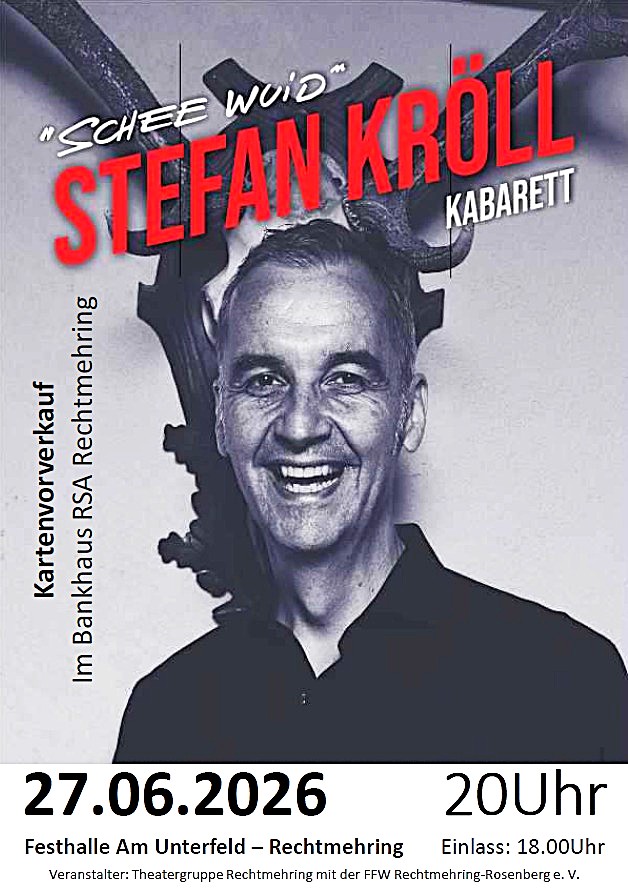 Wer ist noch auf der Suche nach einem Ostergeschenk? Die Theatergruppe Rechtmehring und die Feuerwehr Rechtmehring können da weiterhelfen: Im Bankhaus RSA gibt es Karten im Vorverkauf  für „Schee wuid“- ein Kabarett von Stephan Kröll.