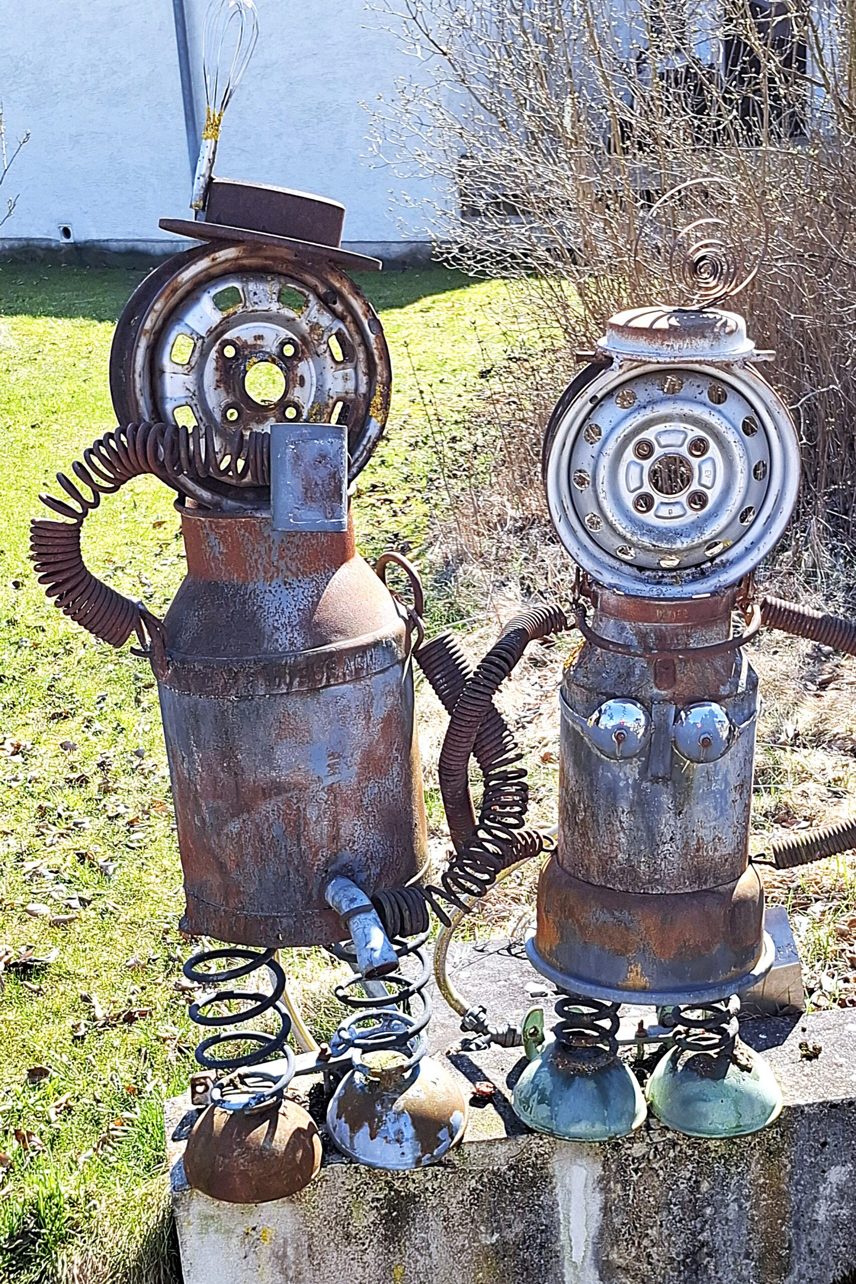 Zum Foto: Dieses Kunst-Pärchen aus Obing grüßt die Wasserburger Teilnehmer schon einmal freundlich vorab …