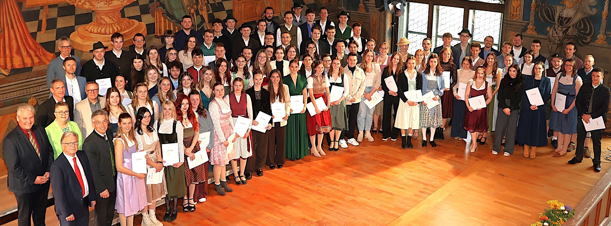 Herausragende Absolventinnen und Absolventen der vier Berufsschulen im Landkreis Rosenheim sind am Wochenende im Rahmen einer feierlichen Zeremonie im historischen Rathausaal der Stadt Wasserburg geehrt worden – siehe Foto. Eingeladen waren die besten Staatspreisträgerinnen und Staatspreisträger ihres Jahrgangs. Die Mehrheit von ihnen hatte die Ausbildung mit einem Notendurchschnitt von 1,0 abgeschlossen.