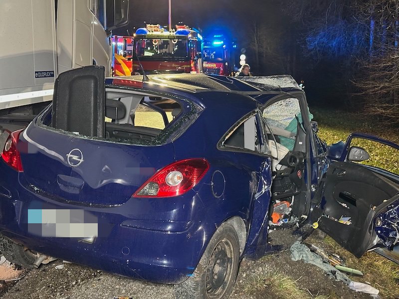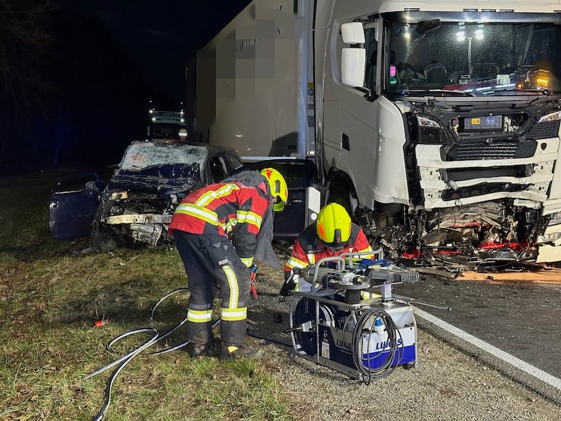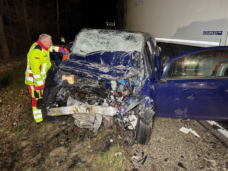 Dienstagabend: Pkw prallt bei Hohenlinden frontal in Lkw - 54-Jähriger kommt ums Leben