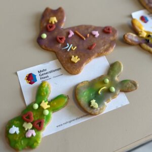 Zum Abschied wurde es noch einmal richtig festlich: Bei einem großen Osterbacken konnten alle Kinder gemeinsam mit Uschi ein letztes Mal Plätzchen ausstechen, backen und verzieren.