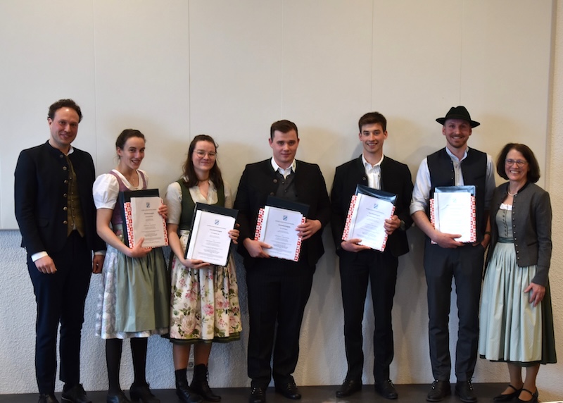 Nach den Präsentationen der Studierenden wurden die Zeugnisse überreicht. Semestersprecher Balthasar Höfer aus Bad Feilnbach gab in einer bemerkenswerten Abschlussrede einen interessanten Rückblick über die vergangenen Semester. Die Studierenden hätten viel geleistet und viel gemeinsam erlebt. Wichtig wäre jetzt ihre Arbeit und ihren Beruf in der Öffentlichkeit positiv darzustellen.