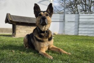 Rocky ist ein Schäferhund und wurde im Januar 2018 geboren. Er ist etwa 50 Zentimeter groß und wiegt 25 Kilogramm. Der Rüde ist kastriert, geimpft und gechipt.