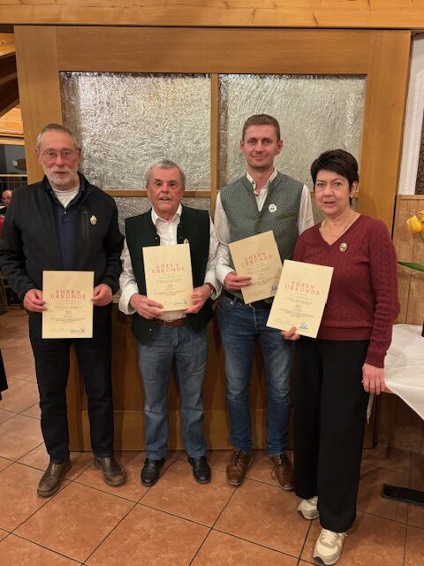 Nach der Preisverteilung ehrte Karl-Heinz Landkammer langjährige Mitglieder. Georg Dasch und Johann Pypetz wurde für 50 Jahre Mitgliedschaft des Schützenverbands geehrt. Uschi Maier wurde für ihre 40-jährige Vereinszugehörigkeit geehrt. Florian Berger erhielt für seine 25-jährige Teilnahme am Sportschießen die Nadel.