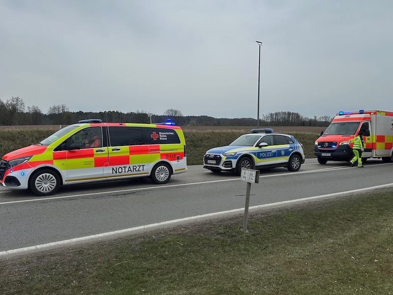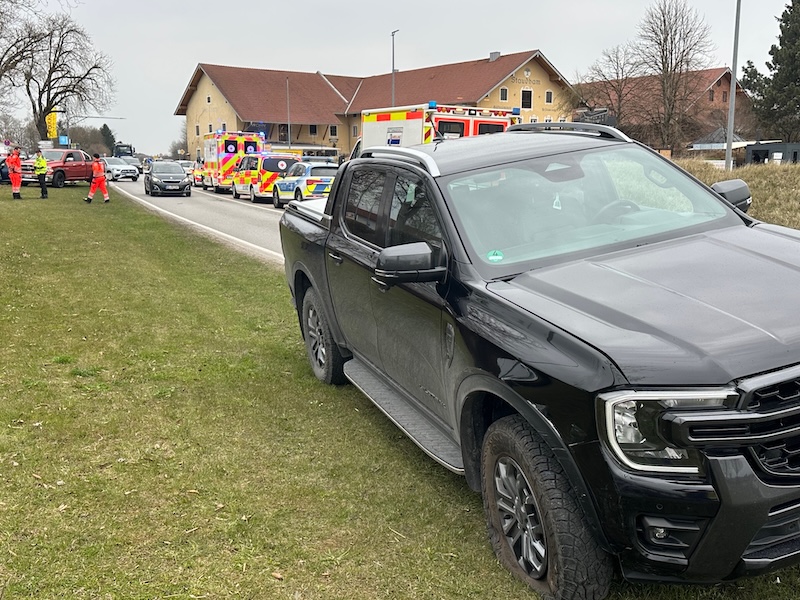 Feuerwehr Attel-Reitmehring rückt auf die B304 aus - Zwei Pkw zusammengeprallt