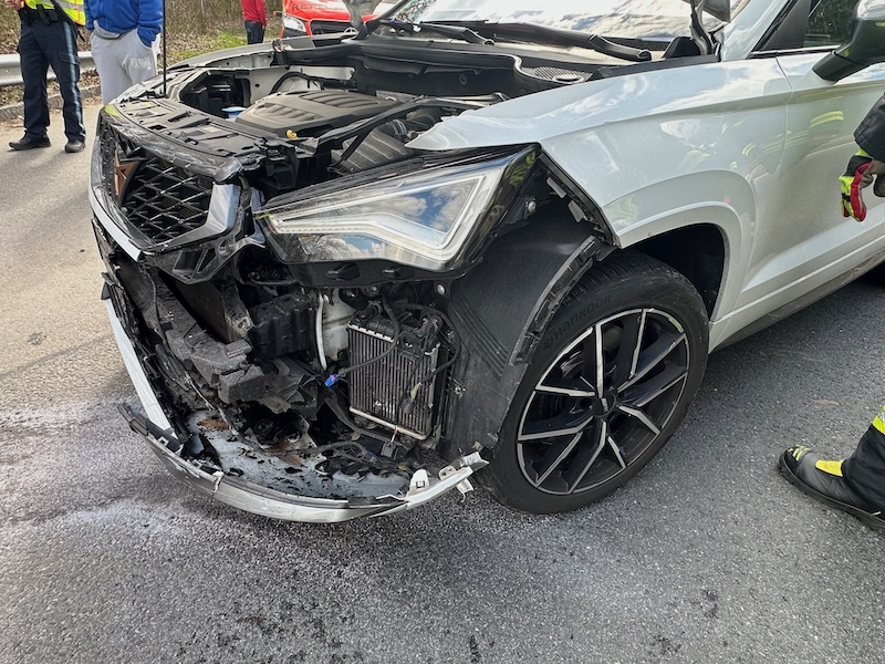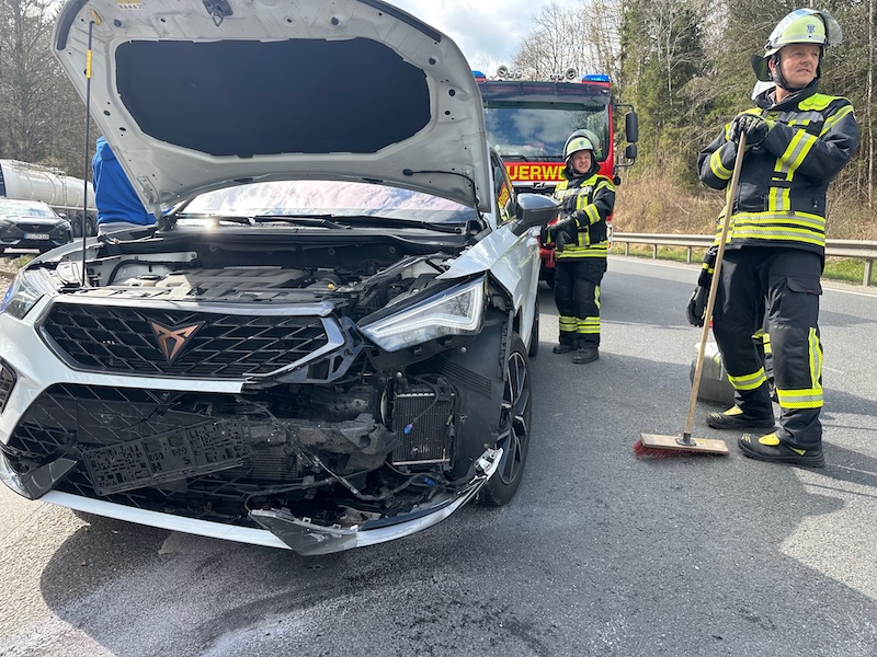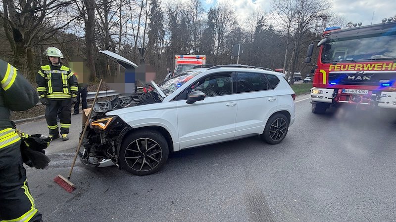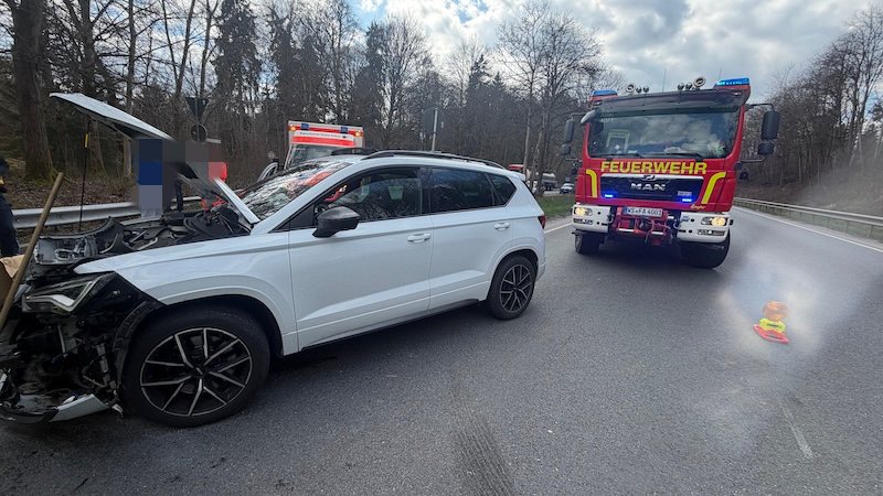 Nahe der Umgehungsbrücke bei Wasserburg sind zwei Pkw zusammengeprallt