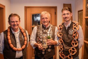 Unser Bild zeigt von links die Könige Johann Grill (Wurstkönig), Andreas Thaller senior (Schützenkönig) und Daniel Schiller (Brezenkönig).