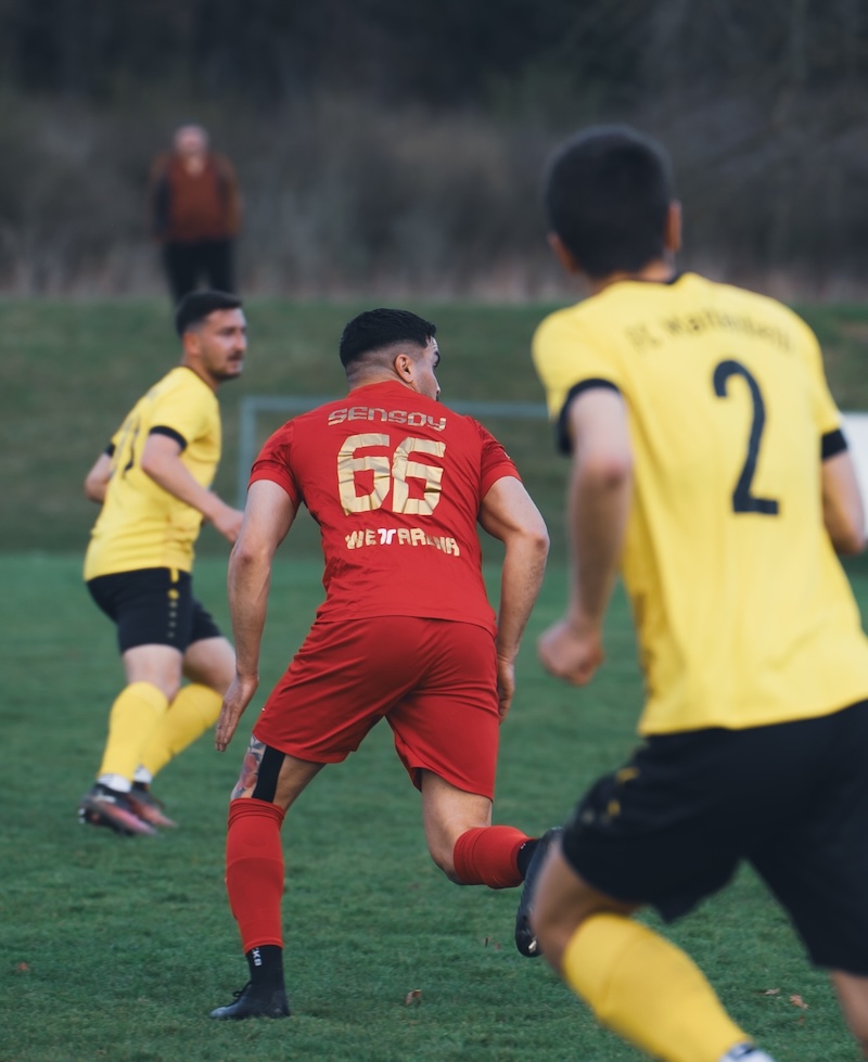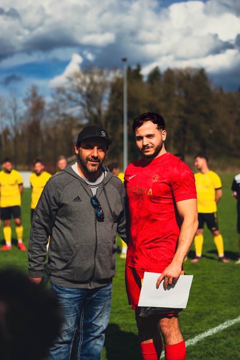 Noch bevor der Ball rollte, gab es eine Verleihung auf dem Rasen. Dogukan Cicek wurde offiziell mit dem DFB-Preis „Fair ist mehr“ geehrt. Die Auszeichnung wurde ihm persönlich vom Kreis-Spielleiter der Herren, Christos Sofis, überreicht. Cicek hatte im Hinspiel gegen den SV Albaching bewiesen, dass sportliche Ehrlichkeit über dem nackten Ergebnis steht: Er gab gegenüber dem Schiedsrichter zu, dass ein Treffer der Wölfe irregulär war – obwohl der Unparteiische das Tor bereits gegeben hatte. Eine vorbildliche Aktion, die nun den verdienten Rahmen fand. (Foto)