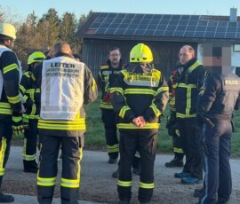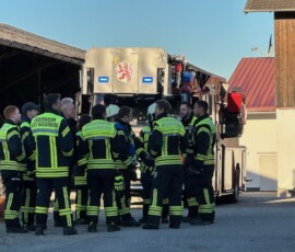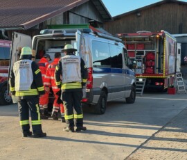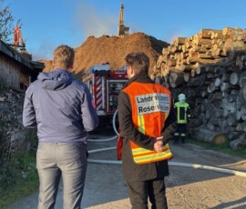 Vor Ort sind auch Kreisbrandinspektor Stephan Hangl, Kreisbrandmeister Marcus Huber und Fachleute des Landkreises Rosenheim.