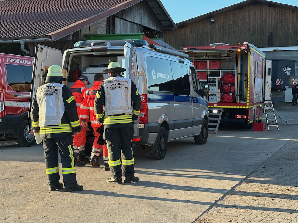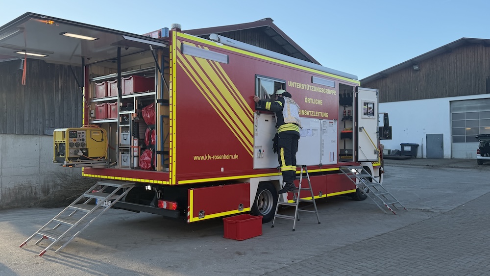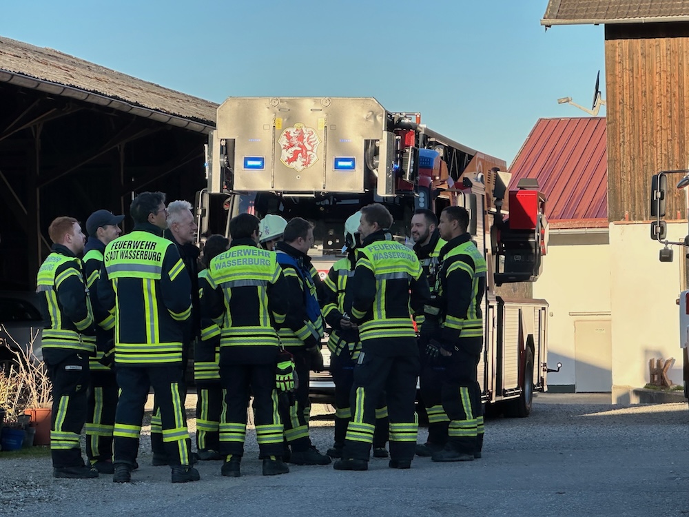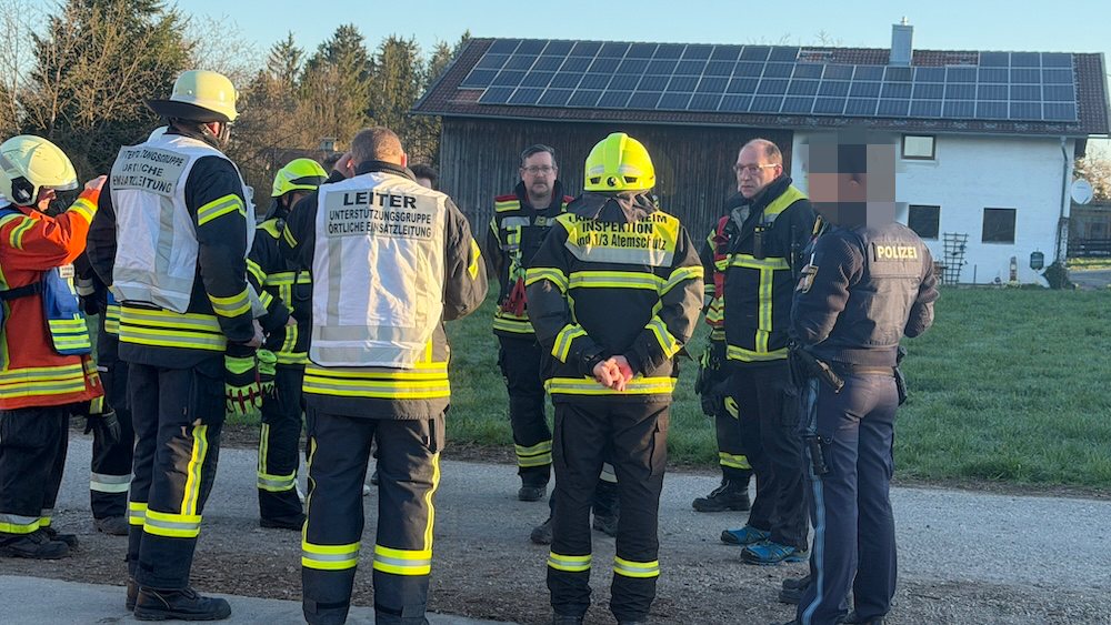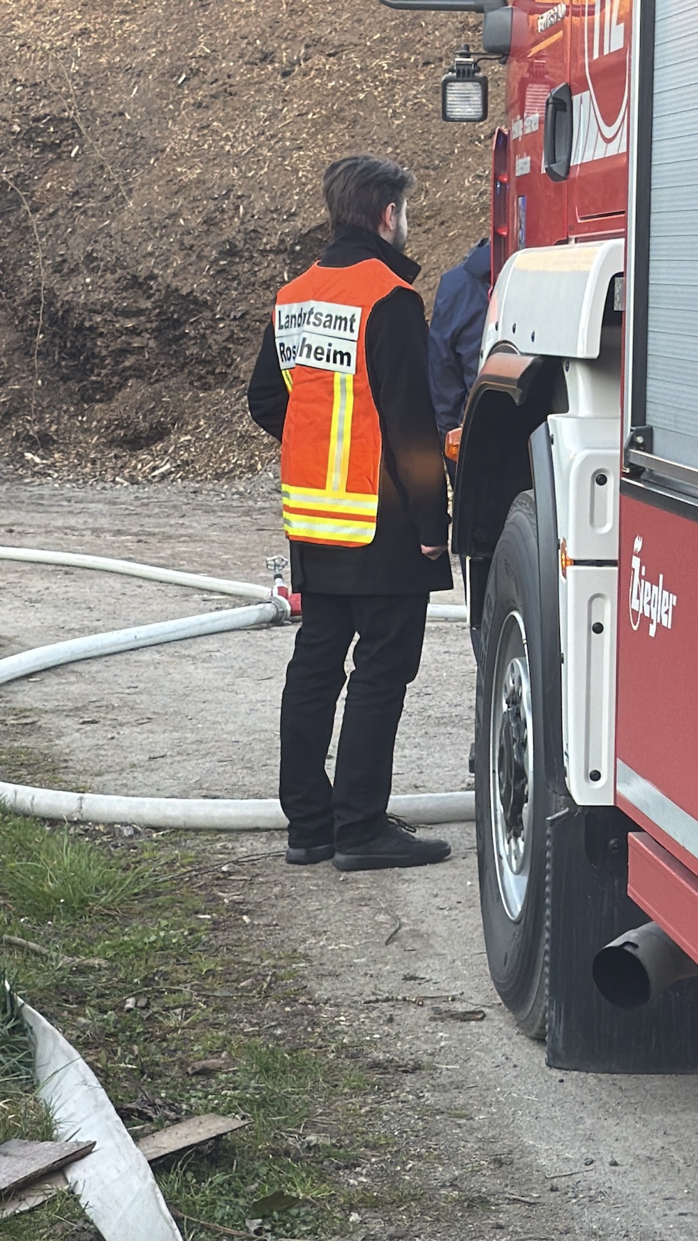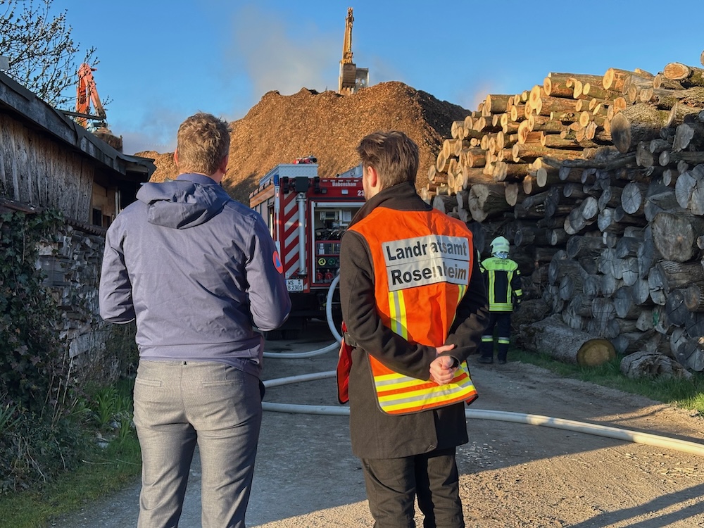Vor Ort sind auch Kreisbrandinspektor Stephan Hangl, Kreisbrandmeister Marcus Huber und Fachleute des Landkreises Rosenheim.