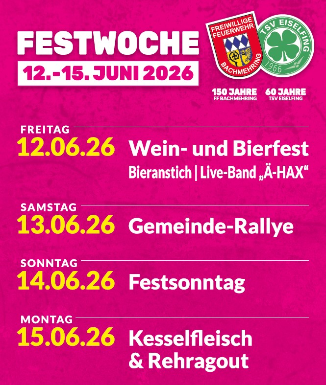 Ein großes Doppel-Jubiläum steht an Mitte Juni in Eiselfing: Die Feuerwehr Bachmehring wird 150 Jahre – der TSV Eiselfing wird 60 Jahre alt.