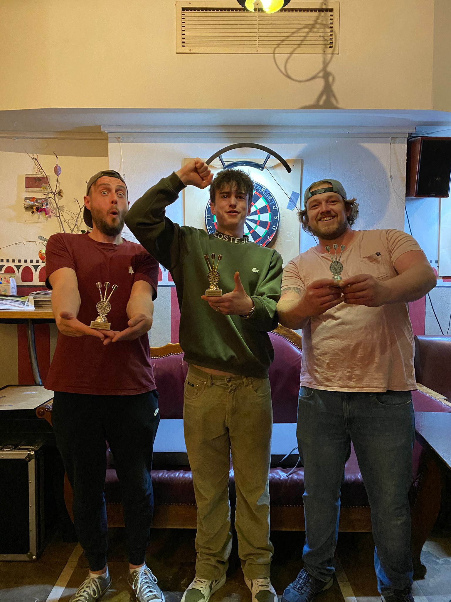 Volles Haus und spannende Wettkämpfe: Im Café „Central“ war am gestrigen Samstag einiges geboten. Fast zwölf Stunden dauerte die Stadtmeisterschaft im Dart. Das Finale fand erst nach Mitternacht statt. Dabei verwies Luis Fruk (Mitte), Adam Cater (links) und Andi Erritz auf die Plätze zwei und drei. Während des gesamten Wettkampfs, bei dem 30 Teilnehmer dabei waren, herrschte im „Central“ beste Stimmung.