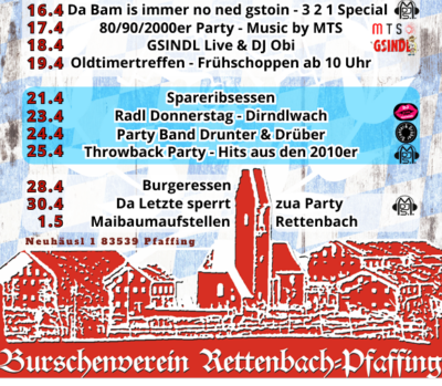 A guade Woch is rum beim Maibaum-Stüberl der Rettenbacher Burschen – Betonung auf guad – und jede Menge war und is los. Chapeau, Burschen: Bestens hergerichtet kommt das Stadl-Lokal bei der Familie Spötzl in Neuhäusl großartig an im ganzen Umland. Bus neben Bus reihte sich am Wochenende aneinander, als einmal mehr unbeschwerte Party-Zeit angesagt war.