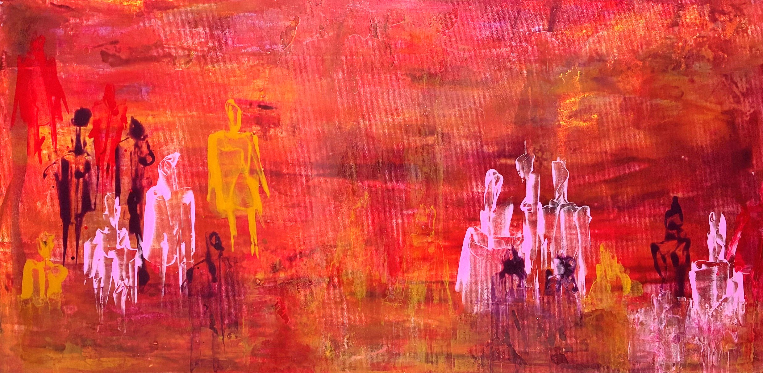 Um dieses Werk geht es: Im Rahmen der Veranstaltung wird das Kunstwerk „come together“ (Acryl auf Leinwand, 40 x 80 x 3,5 cm – siehe Foto) versteigert.