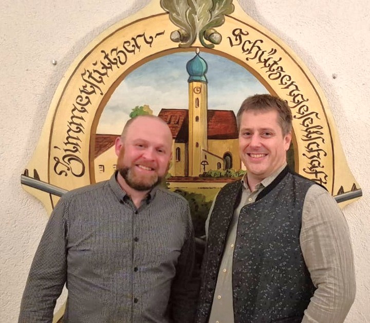 Neue Führung bei den Pfaffinger Schützen: Bei der Jahresversammlung gab Schützenmeister Florian Schreyer (links) nach sechs Jahren sein Amt ab und als Nachfolger wurde Felix Bableck (rechts im Bild) gewählt.
