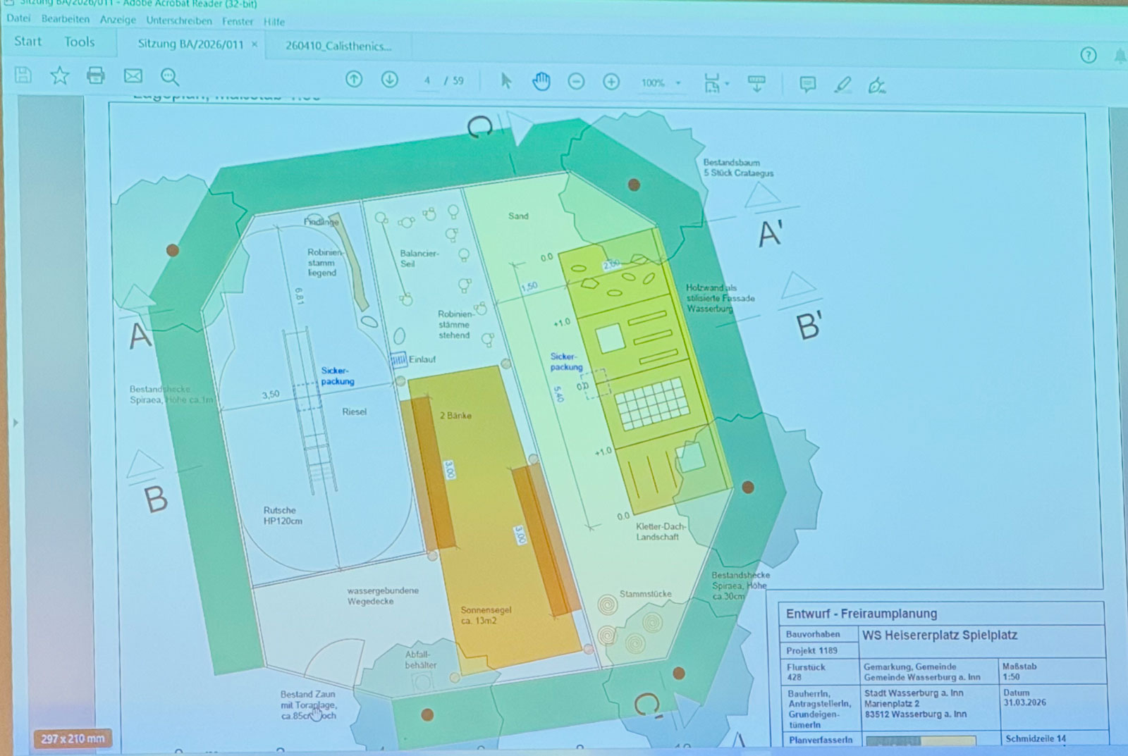 Der in die Jahre gekommene öffentliche Spielplatz am Heisererplatz in Wasserburg soll noch in diesem Jahr umfassend saniert und neu gestaltet werden. In der gestrigen Sitzung des Bauausschusses stellte das Planungsbüro Landschaftsarchitektur Niederlöhner den Entwurf vor, der insbesondere natürliche Materialien und eine thematische Anlehnung an die Wasserburger Altstadt vorsieht. Trotz einer Kostenschätzung von rund 70.000 Euro herrschte Einigkeit über die Notwendigkeit der Maßnahme. Der Ausschuss verabschiedete die Planung einstimmig, forderte jedoch Nachbesserungen bei Spielgeräten für Kleinstkinder und die Prüfung der Wiederverwendung vorhandener Elemente.