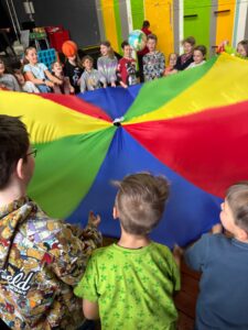 Die bemalten Ostereier wurden am dritten Tag für einen Eierlauf genutzt. Dabei waren ruhige Hände gefragt, um das Ei sicher auf dem Löffel zu balancieren. Zum Auspowern gab es einen Stopptanz, bei dem die Kinder mit viel Engagement dabei waren. Neben den angeleiteten Angeboten war das freie Spielen bei den Kindern besonders beliebt. Die Räumlichkeiten des JUZ erwiesen sich dabei als ideal, da die Mal- und Bastelangebote räumlich getrennt von den aktiveren Spielen stattfinden konnten.