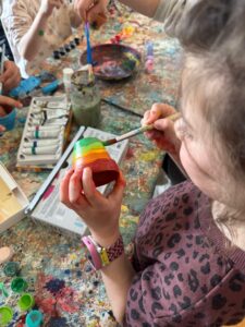 Am zweiten Tag bemalten die Kinder Blumentöpfe und Ostereier. Anschließend durften sie Ringelblumen in die Töpfe einsäen. Für ausreichend Bewegung sorgten Ballspiele und weitere aktive Spiele.