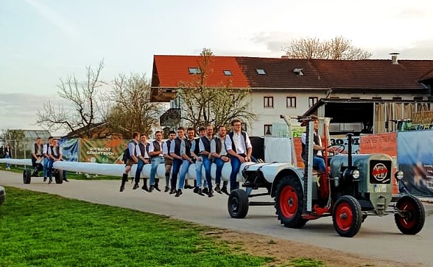 Lang war er ned weg – der Rettenbacher Maibaum. Wie das Foto beweist, haben ihn die Diebe aus Jakobneuharting bereits wieder anständig zurückgebracht. Nach guadn Verhandlungen vo Burschen zu Burschen …